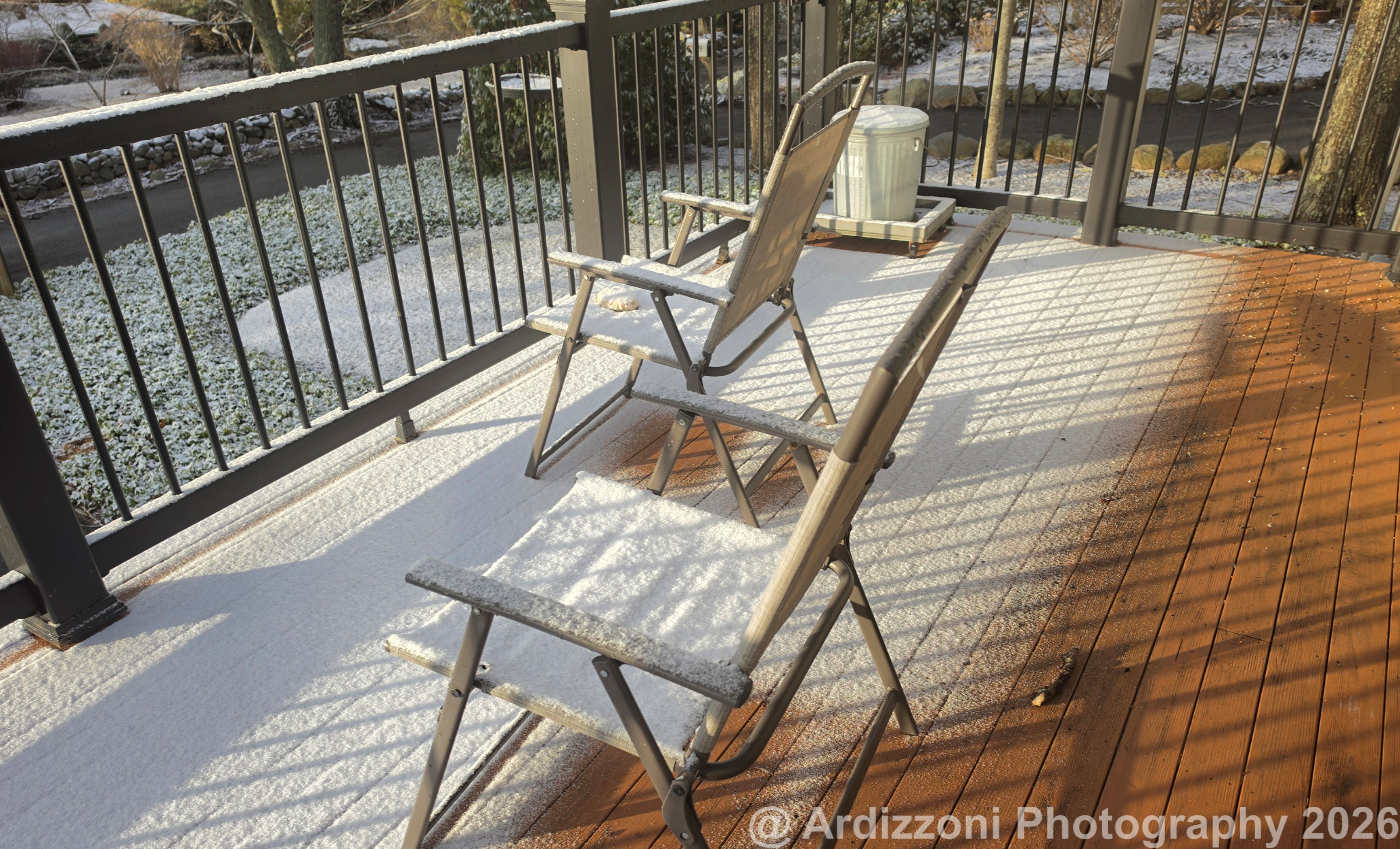 On the sunny days, I decided to put out some deck chairs. Seems ironic that the chairs look inviting except for the pretty dusting of snow.