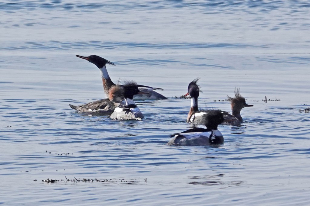 Seasonal Red-breasted Mergansers found unfrozen water in Lighthouse Cove.