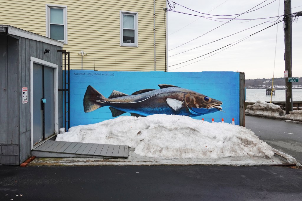 Josh Falk’s ‘Atlantic Cod’ looking apprehensive, swimming on snow.