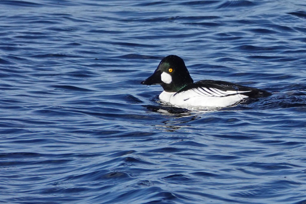 With the ice melted, a Common Goldeneye had free rein of the pond.