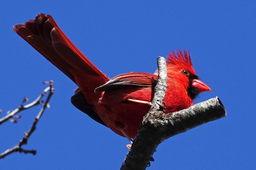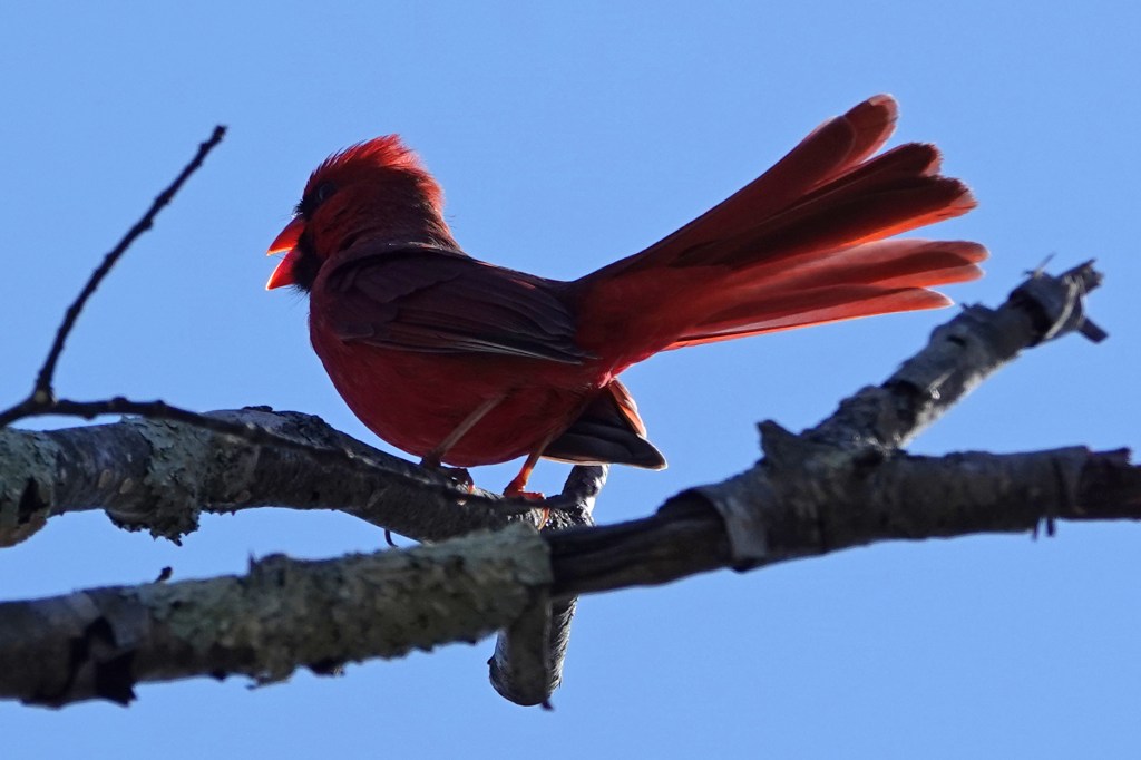 A competetive Northern Cardinal protecting his area.