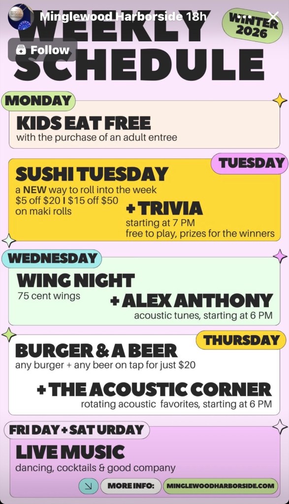 Minglewood Harborside Weekly Schedule Winter 2026