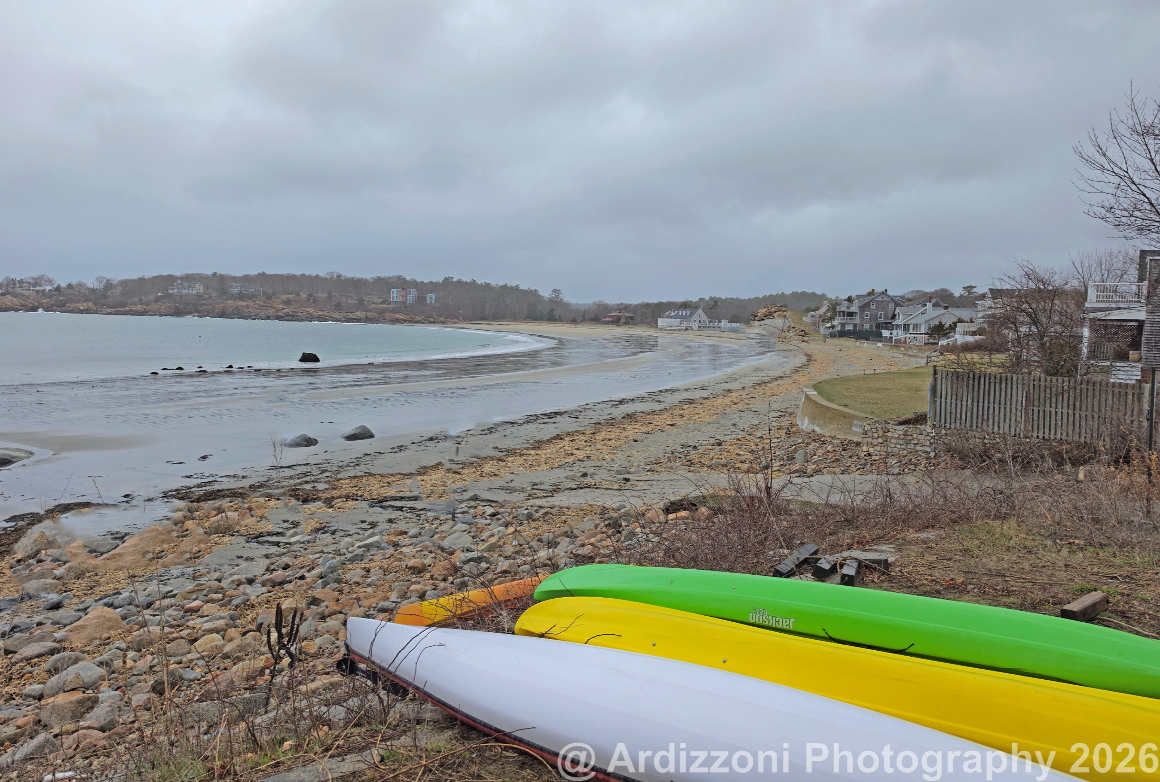 After a real winter, the kayaks and their owners are anxious to get on the water. With the rainy weather, the beach always looks inviting.