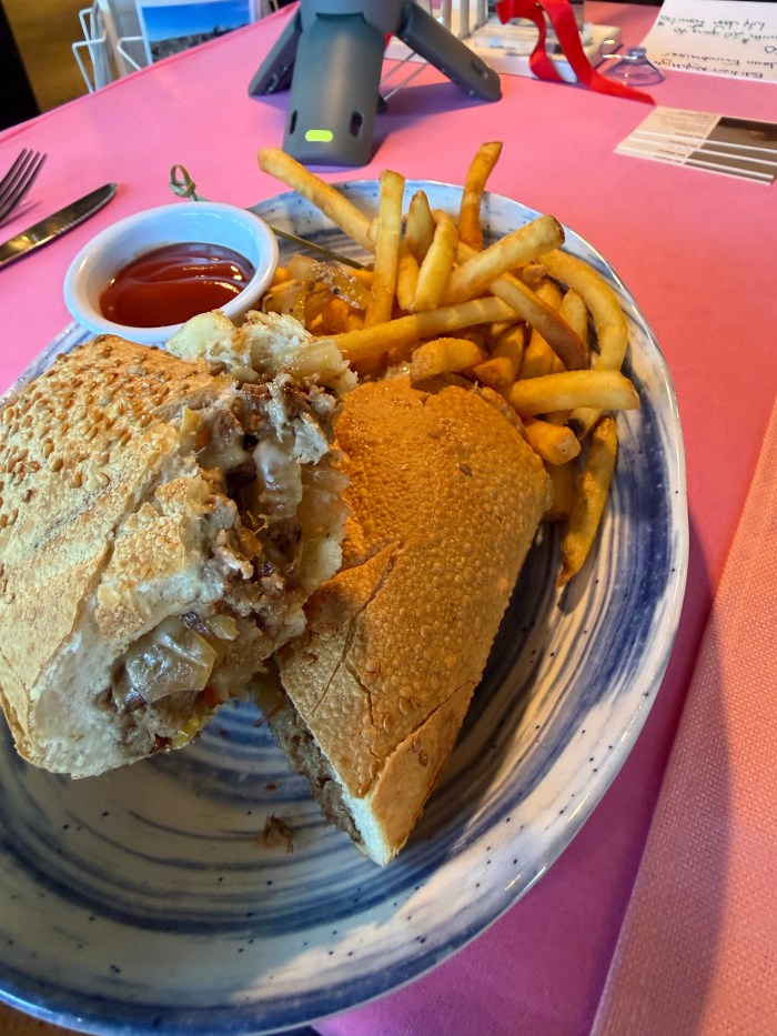 My favorite steak bomb hands down is available at Minglewood. All you have to do is ask for it! The sandwich arrives with freshly prepared shaved steak, onions and peppers surrounded by a crispy crunchy roll. The topper is that the roll is crusty without tearing your mouth into shreds. The second best part is that the sandwich is manageable with two hands and no utensils if you choose. Can you tell it hit the spot for me? Win Win Minglewood! Thank you for another winning menu item.