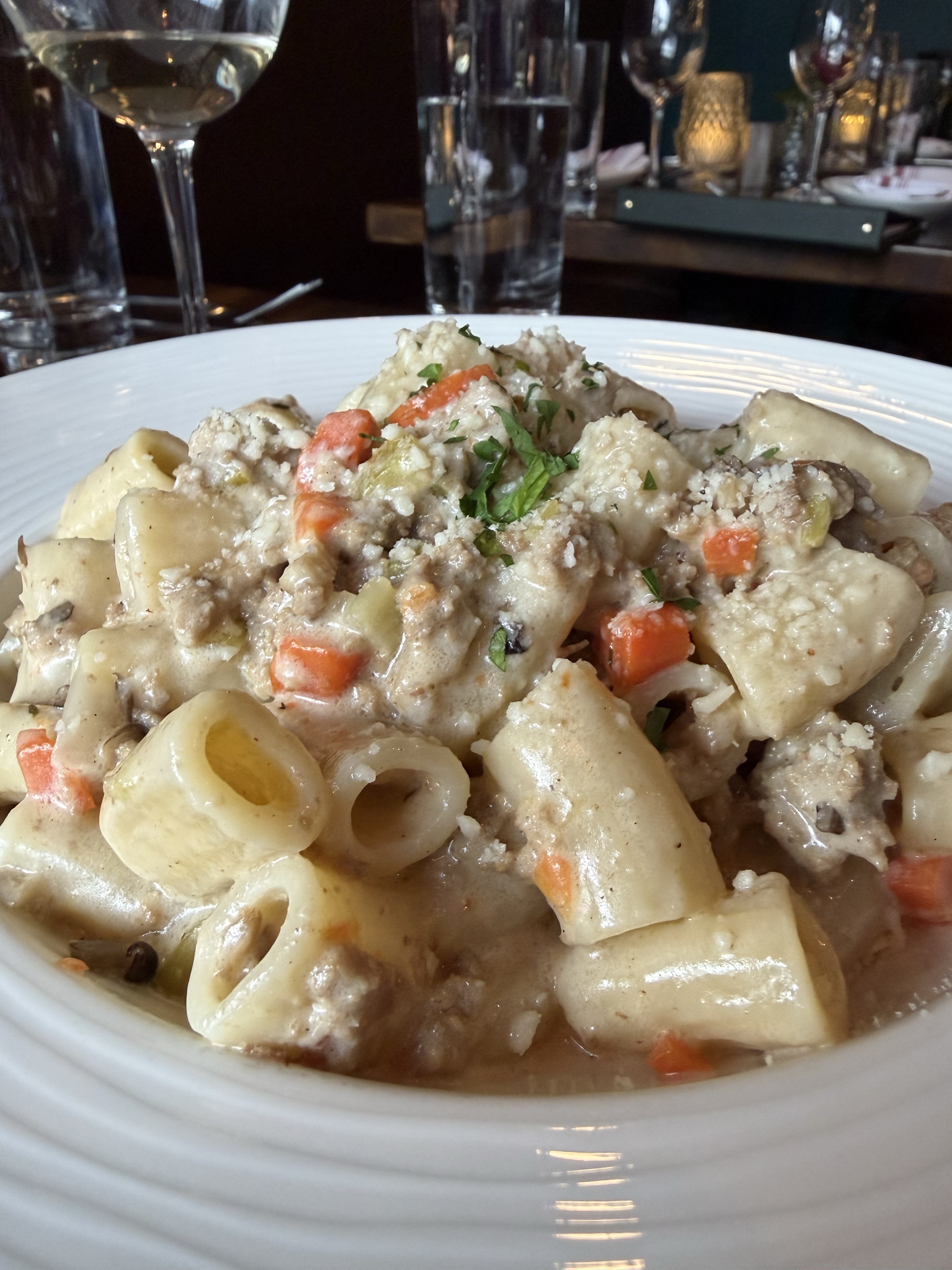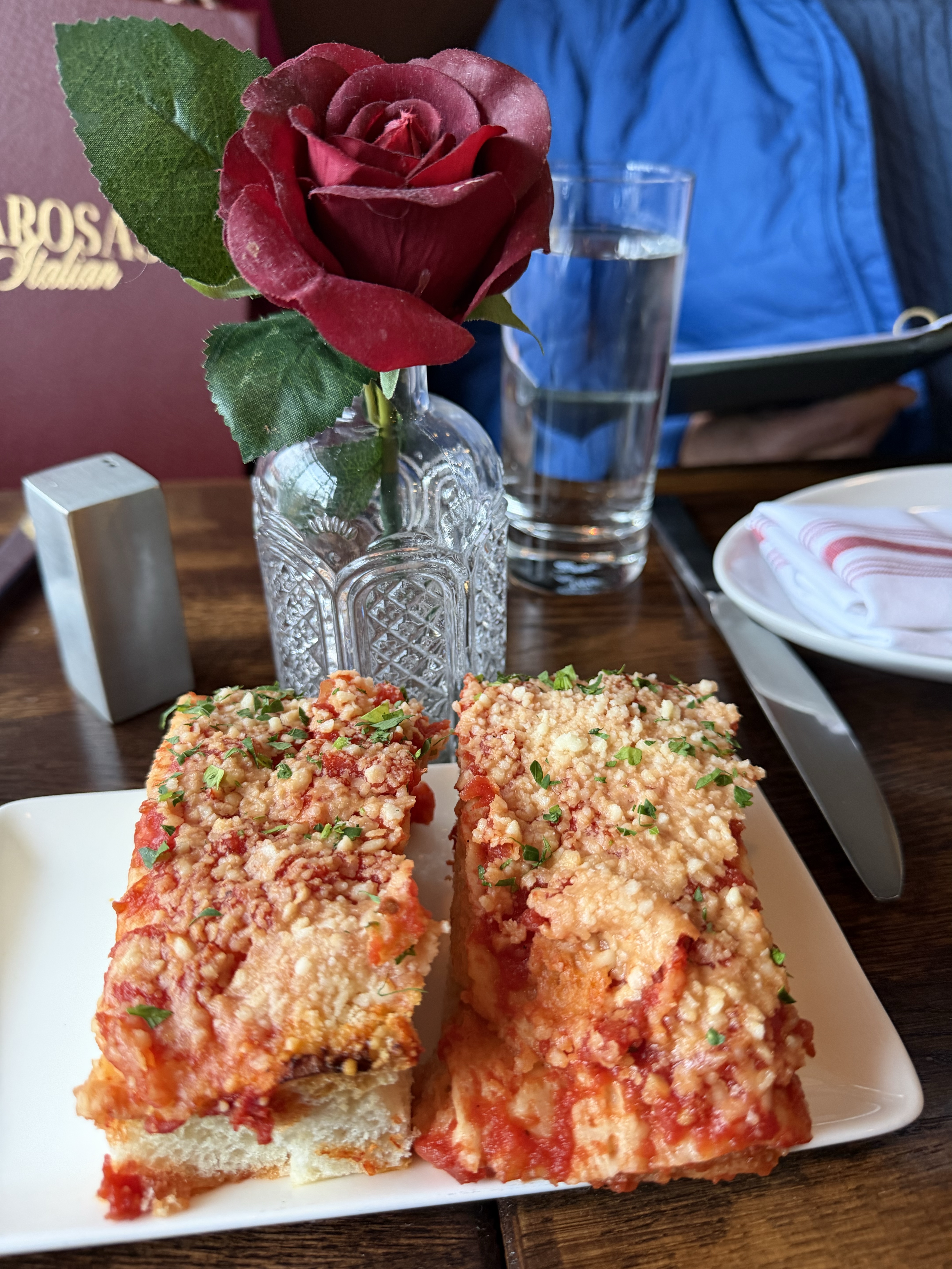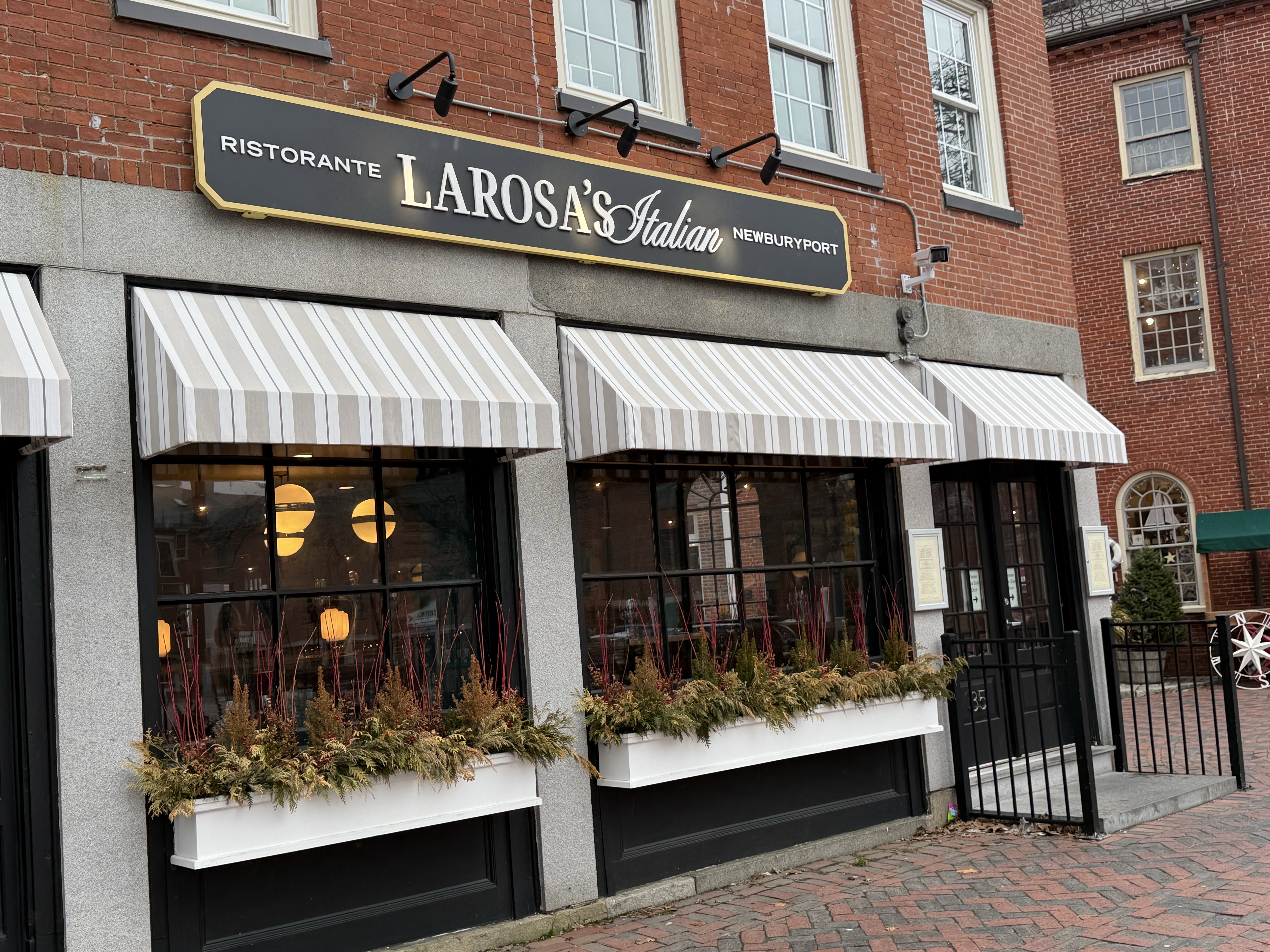 We treated ourselves to a night out with our friends Susan and Leo LaRosa by going to LaRosa’s on Market Square in Newburyport last week. What a delightful experience we had! Riley, our server was top notch. The meal started with focaccia bread topped with red sauce and cheese….very tasty. The wine selection was outstanding (though I had one of the cocktails…really delicious). Susan, Leo and Jim each got a different wine and they said it was excellent.