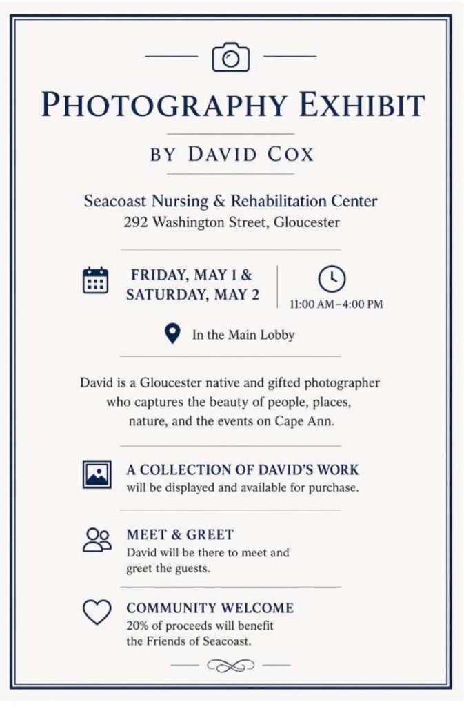 David Cox Photography Exhibit May 1&2 At Seacoast