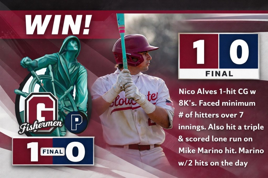 Gloucester Baseball improves to 7-0 overall on the season with 1-0 win at Peabody.