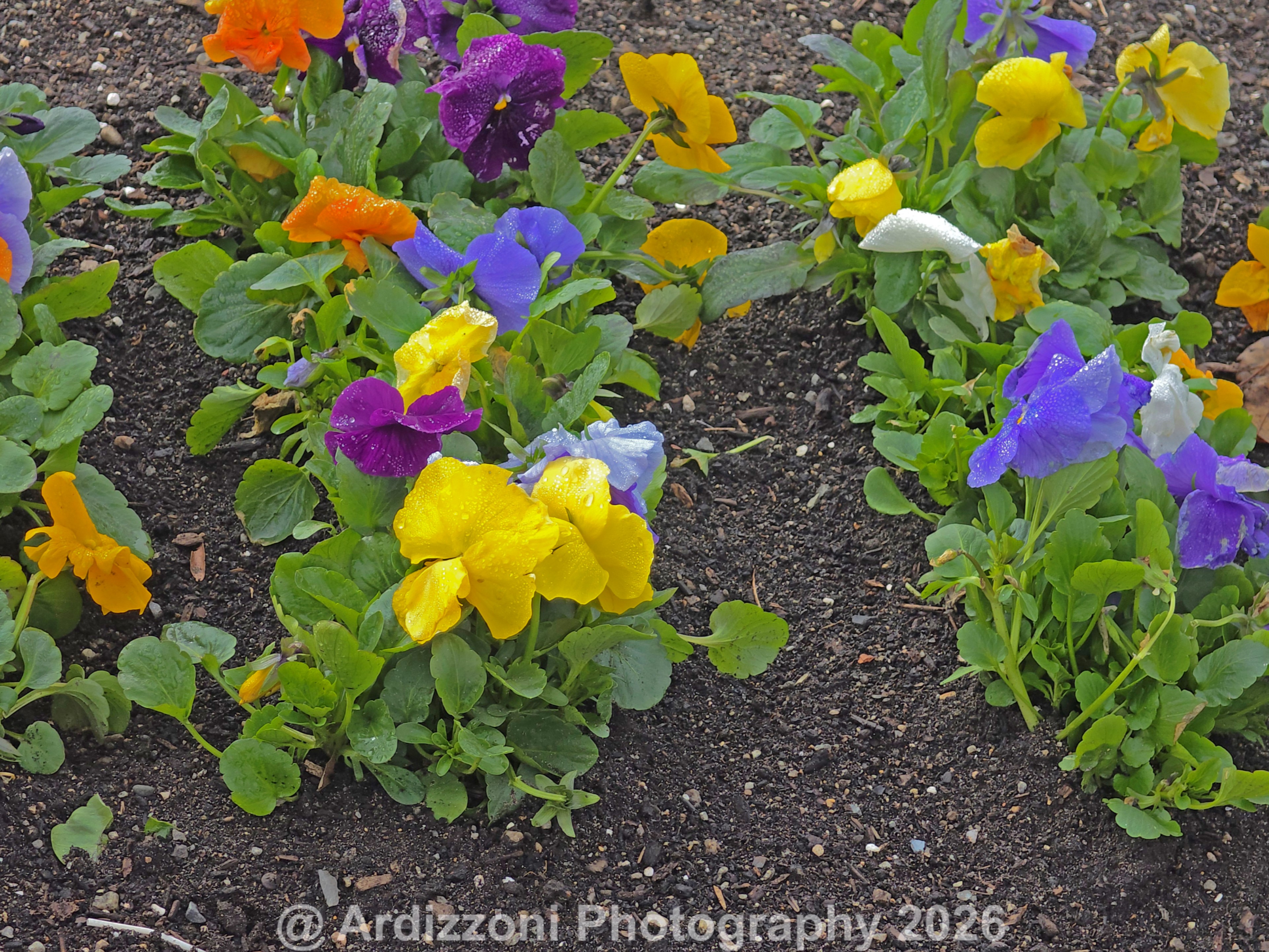 With the clouds breaking through on Saturday morning, the pansies on the boulevard looked like they were shining.
