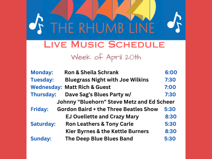 Here’s this week’s live music schedule for this week.