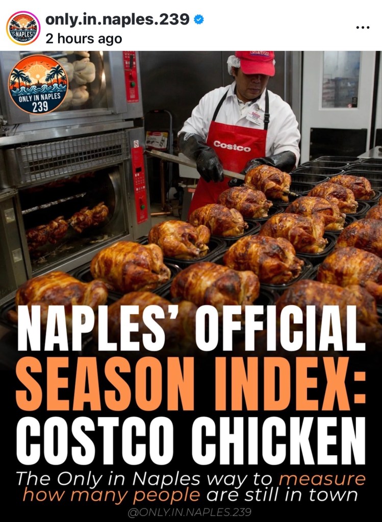Forget traffic counts, dinner reservations, or how many out-of-state plates are still on 41. One of the funniest ways to measure season in Naples is sitting under a heat lamp at Costco.