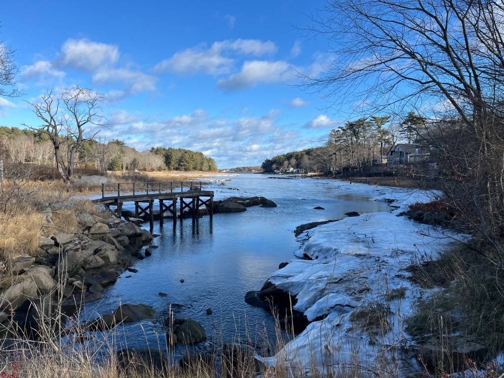 Dec 21: Cape Ann Collectors paired art with wines during their ‘Palette to Palate’ Exhibit.Dec 23: A White-tailed Deer family was looking for something green.Dec 23: Canada Goose. “Survived Thanksgiving. Hope Christmas isn’t more of a threat.”Dec 24: An impressive Christmas Eve sunset, with the Boston skyline.Dec 25: A female Common Eider bobbing in the waves. Merry Christmas.Dec 26: Ice conditions not perfect for skating. “I’ll rest and check my messages.”Dec 27: Male Northern Cardinal. Forget about camouflage in the snow.Dec 28: “I could swear this birdbath used to have drinking water.”Dec 31: Talk about ‘flash frozen’ around this small rock in Niles Pond.Jan 1: ‘Bear’ finally loves the weather. Happy New Year.Jan 2: A small part of a flock of European Starlings taking a break on the wires.Jan 3: Iceboating on Niles Pond. Brakes are still crude technology.Jan 3: The sun breaks through later. Student learner riding on one of the runners.