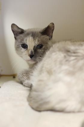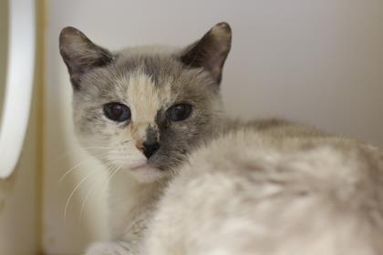 I have beautiful blue eyes, soft cream-colored fur, and probably have some Burmese in my family tree. I would love a quiet adult home where I can take some time to open up and explore on my own time. I am cuddly, loving, and adore being pet by the staff here and sitting in laps. I don’t seem extremely fond of the other cats though, so I would probably do best as the only pet in the home.