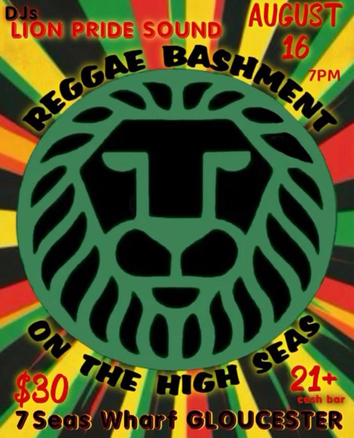 WITH DJS LION PRIDE SOUND SPINNING STRICTLY THE BEST IN REGGAE, ROOTS, ROCKERS,LOVERS ROCK, DANCEHALL, SKA, AND ROCKSTEADY!!! COMING TO YOU LIVE AND DIRECT FROM THE SEVEN SEAS WHALE WATCH 63 ROGERS ST GLOUCESTER MA 01930 ( RIGHT NEXT TO GLOUCESTER HOUSE RESTAURANT) 7 pm PM BOARD 7:30 PM DEPART( SHARP ) GETS BACK AT 10:30 ****THIS EVENT IS $30 PER TICKET! PAYPAL: VISUALINTERESTDESIGN@YAHOO.COM VENMO to @LARA-JARDULLO DM for Credit Card Sales Memo: Reggae Bashment on the High Seas CASH BAR ON BOARD! 21+ Check out our boat at: HTTPS://WWW.FACEBOOK.COM/WHALEWATCHINGMA