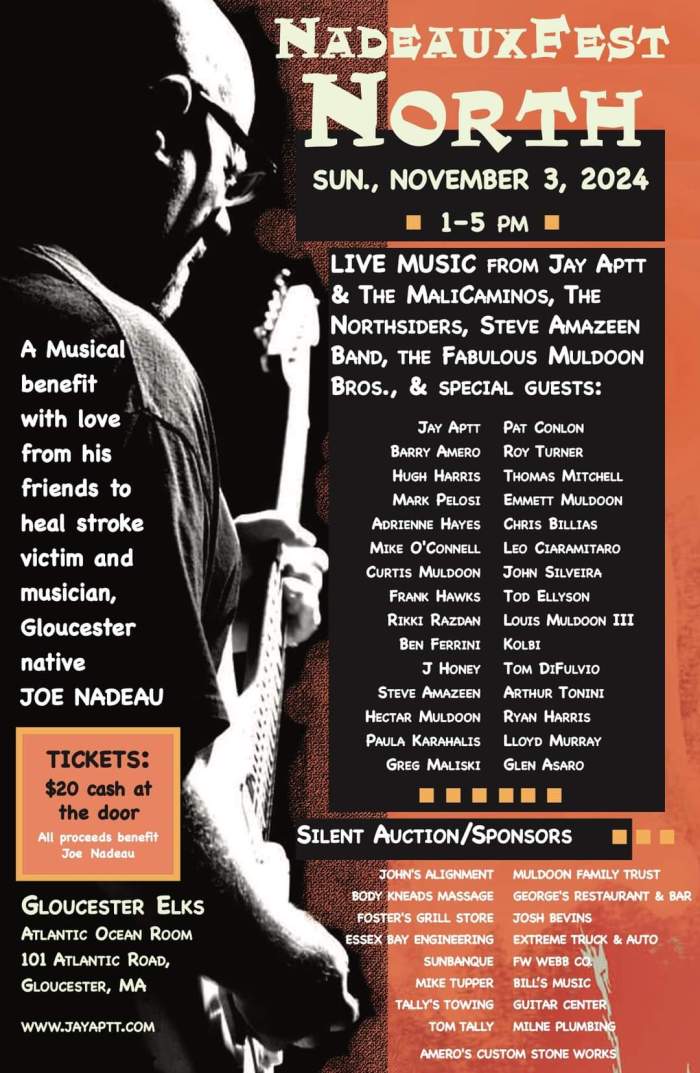 Our good friend , pro musician and Gloucester native Joe Nadeau has had a stroke down south in Louisiana .