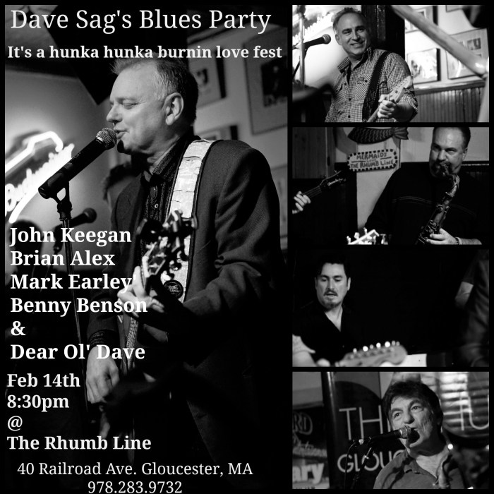 Valentine’s Day KissFest 2019 at the Rhumbline in Gloucester. We’re celebrating by giving out free kisses to the first 600 patrons that evening. Join me, the hotter-than-hell Brian Alex of Entrain, Grammy nominated Mark Earley of roomful of blues and Victor Wainwright and the train, Dave Sag holding down the big bottom bass, and rhythmic Einstein, Benny Benson on the drums. 2-14-2018. 8:30-11:30