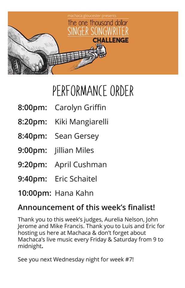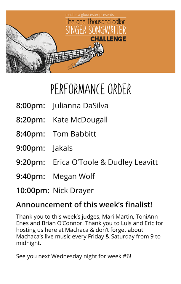 I’m excited for tonight’s edition of Machaca’s $1,000 Singer Songwriter Challenge. We have a rare night where 5 out of our 7 performers will be women singer-songwriters. Come on down at 8pm for what should be an awesome night of live, local music with the night’s finalist moving on for a chance to perform for a piece of the $1,500 prize purse in 2 weeks!