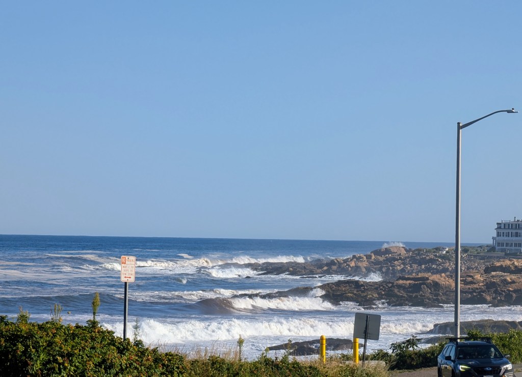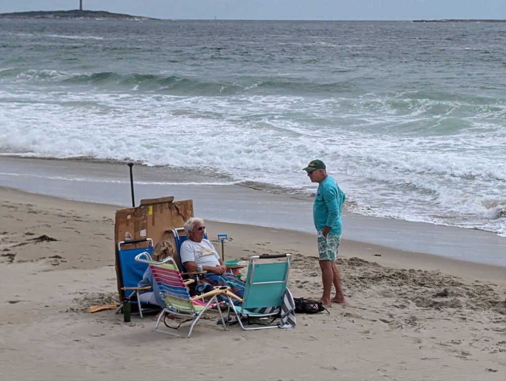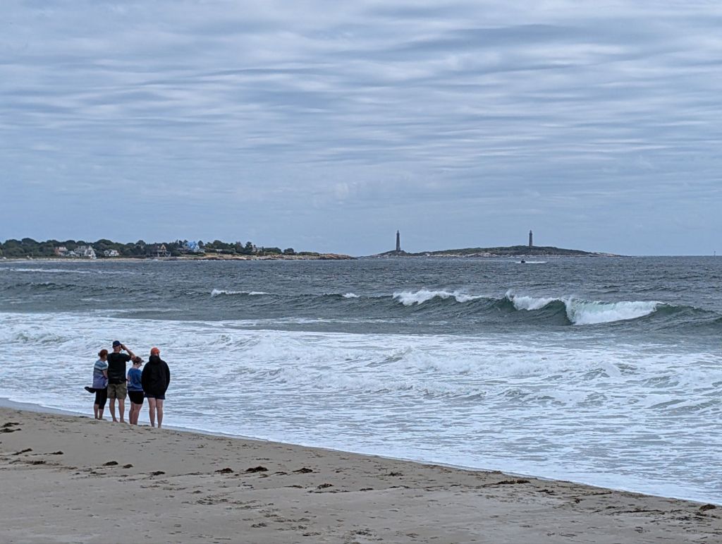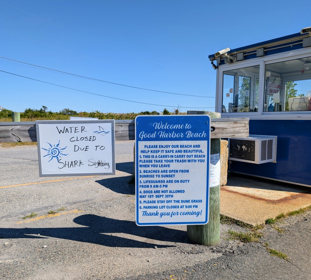 Both Long Beach and Good Harbor Beach were closed to swimming again due to shark sightings –and seals, too, viewed from Good Harbor. Rumors about a beached Great White circulated and dissipated. Long Beach reopened to swimmers. The waves are tremendous.