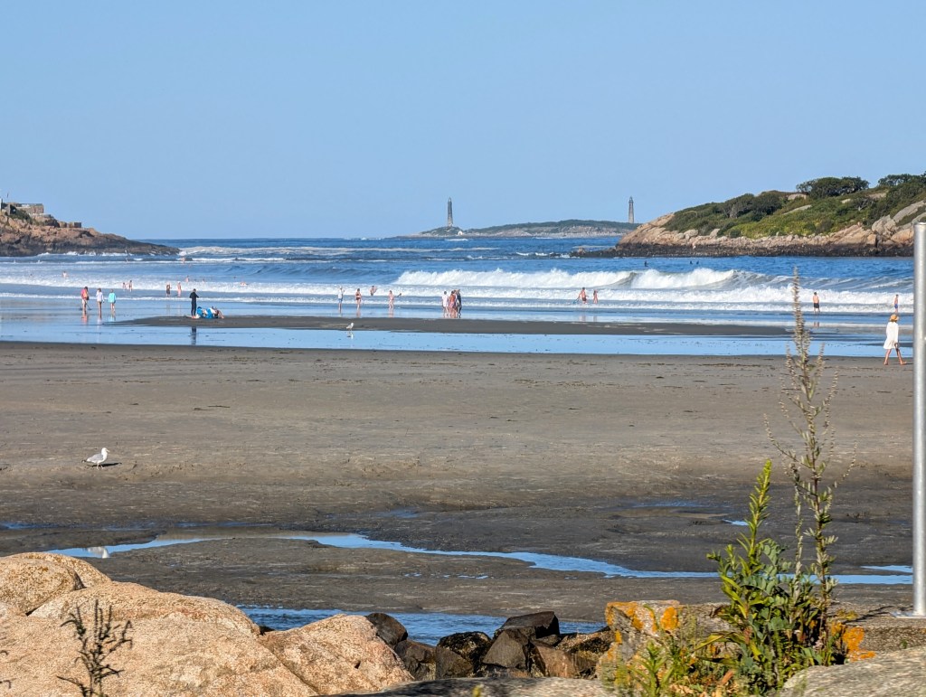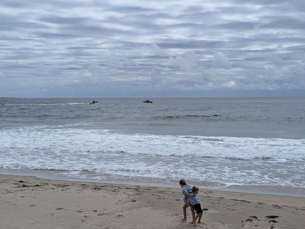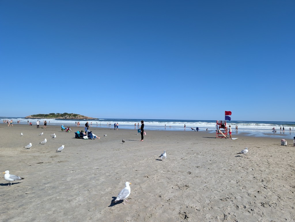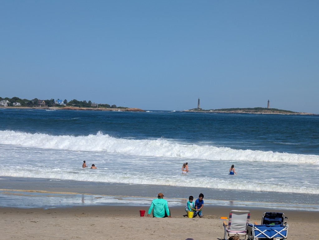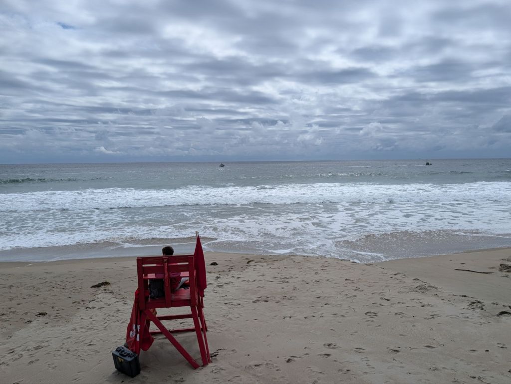 Both Long Beach and Good Harbor Beach were closed to swimming again due to shark sightings –and seals, too, viewed from Good Harbor. Rumors about a beached Great White circulated and dissipated. Long Beach reopened to swimmers. The waves are tremendous.