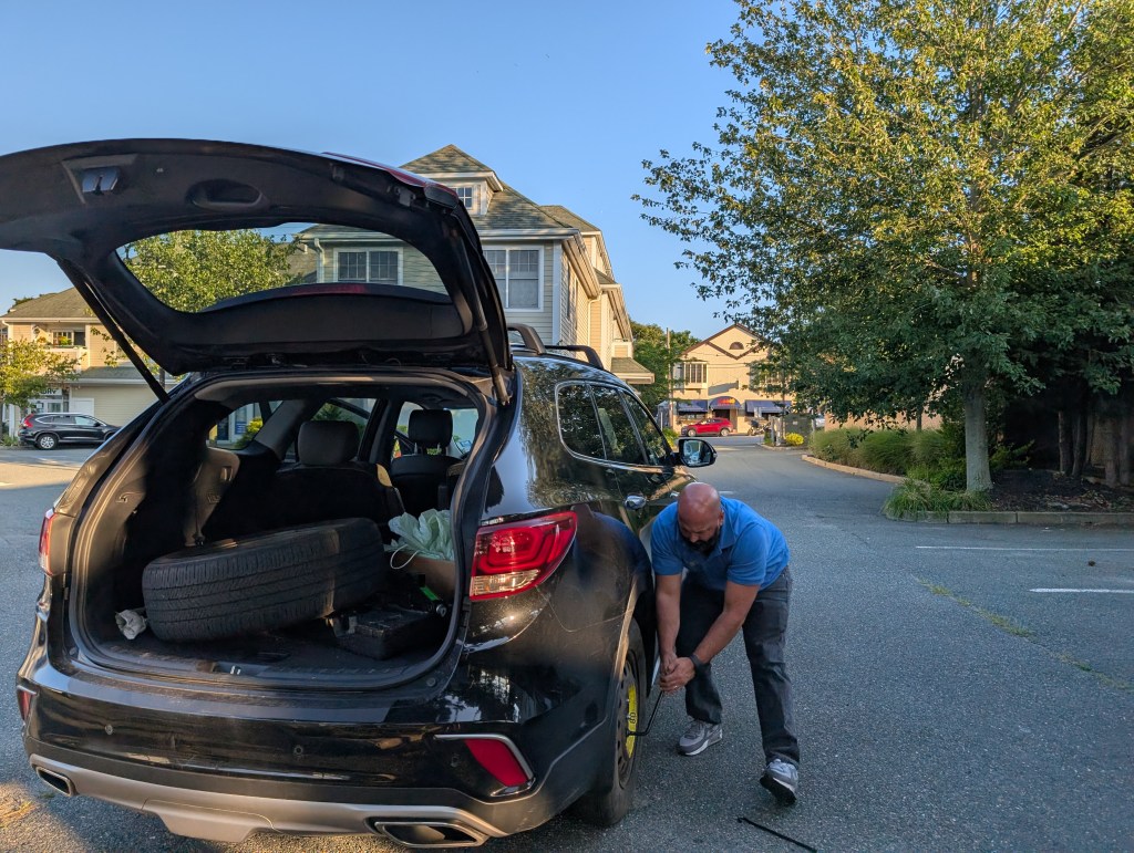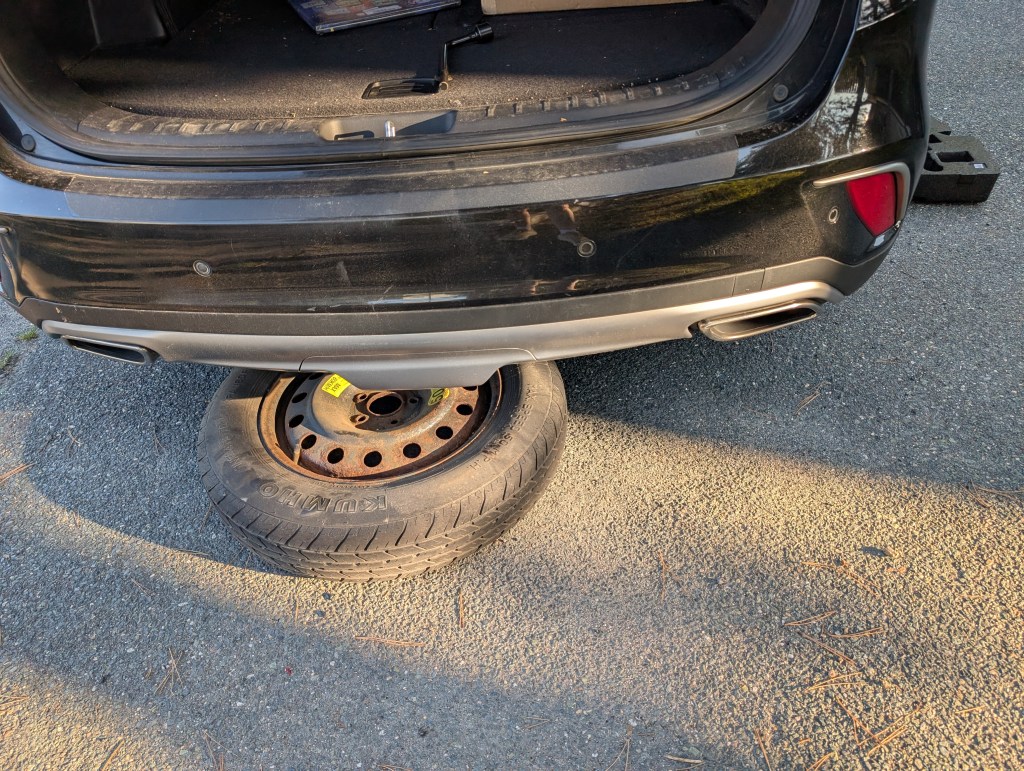 After 5pm, I had only got about this far changing the tire when Bill circled back to offer to help–even though he was on his way home and gearing up for a milestone weekend celebration. Thank you ! Congratulations to you and the staff over so many, many years. That’s a long successful run for a local business that is clutch for so many.