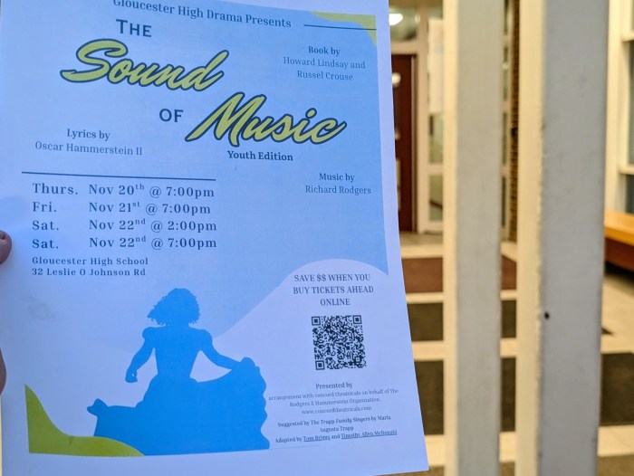 The Gloucester High School production of The Sound of Music Youth Edition will be presented at Gloucester High School on 32 Leslie O’Johnson Road, in Gloucester, MA on on Thursday, November 20 at 7:00pm; Friday, November 21 at 7:00pm; and Saturday, November 22 at 2:00pm and 7:00pm. Tickets can be purchased by using the qr code below or at by visiting https://gloucesterhighdrama.ludus.com/200502487