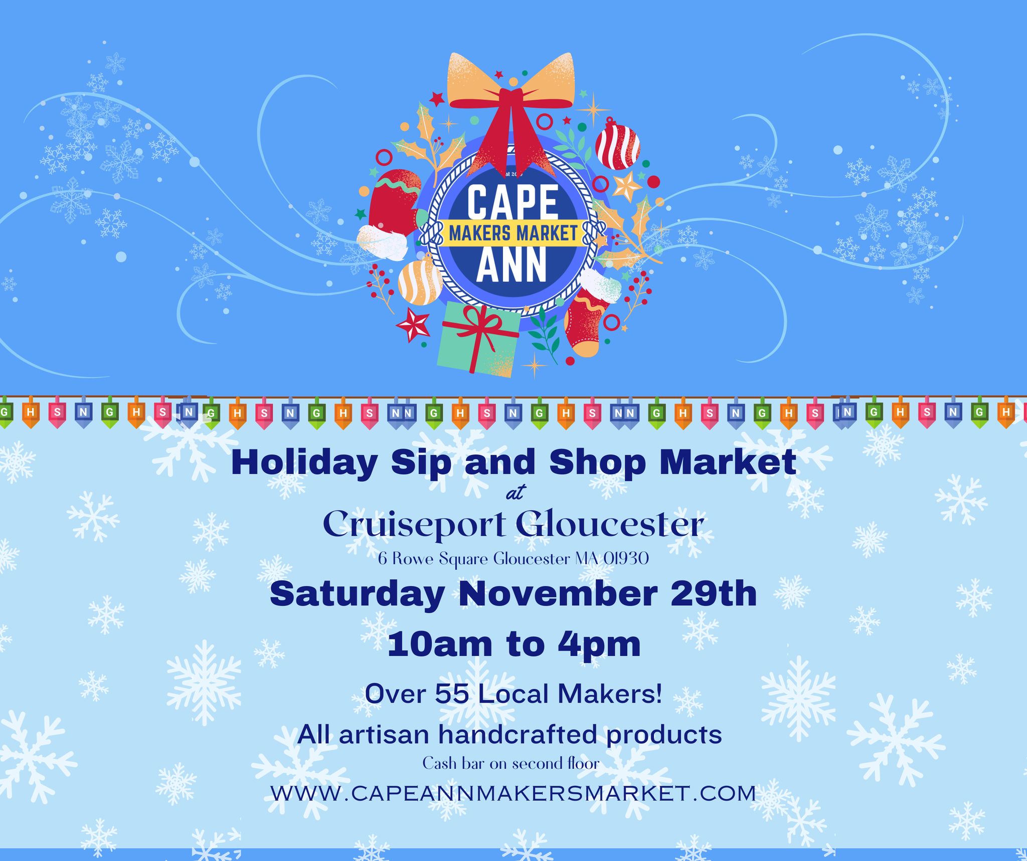 On Saturday, November 29, 2025, the Cape Ann Makers Market was held at the fabulous venue Cruiseport. Thank you to these three women for organizing a great event. Aniko Baglaneas Ewes, of Cape Ann Salt, Deanna Fay-Anaya, Hold & Fast, and Angie Butler, Eleven Eleven Elixir. These three women worked so hard, and we had an amazing and successful event. Thank you all who came out to shop locally. Since it was so busy no time for taking photos which is a good thing for small businesses.