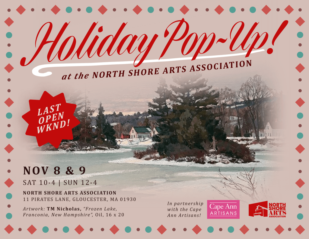 The Cape Ann Artisans are pleased to join the North Shore Arts Association (NSAA) for its Annual Holiday Pop-Up alongside its two final shows of the season. While NSAA hosts SYNERGY and a New Members Show, seven of the Artisans will display their work to create a festive marketplace for holiday shopping!