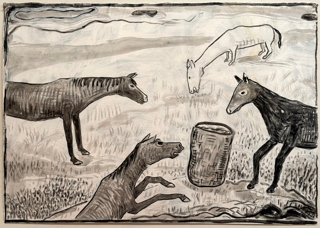 “My art has always been a space to explore the humorous, surreal, and poignant elements of life—often through a very tiny lens,” says Robinson-Cox. “It’s a joy to bring these worlds to new audiences, and I’m thrilled to show this body of work at The Salted Cod.”