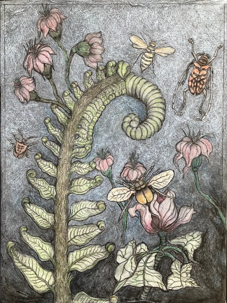 Beauty is a key ingredient in artist Resa Blatman’s toolbox; her drawings and paintings reflect her reverence for the natural world. Her works are both contrary and compelling. Finally, visitors who have been drawn in by the captivating image announcing this show and the city-wide STAND UP for ART & SCIENCE initiative, can see more of Michelle Samour’s brilliantly colored hand-made paper works on the walls at the Cultural Center.