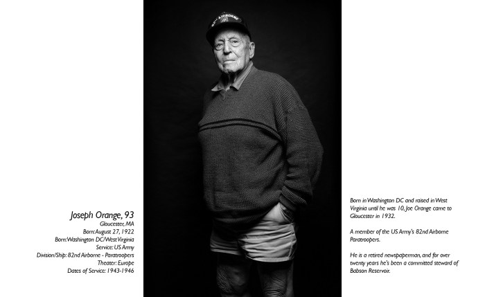 Gloucester resident Joe Orange wore his trademark shorts for this portrait by Jason Grow made for a series on the city’s World War II veterans. Orange died Tuesday; he was 97.