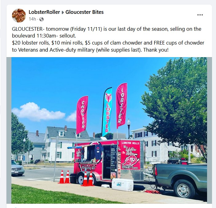 Sharing news from the Lobster Roller Facebook page that today (Friday Nov 11) is their last day of the season. Check them out along the boulevard today starting at 11:30 am.