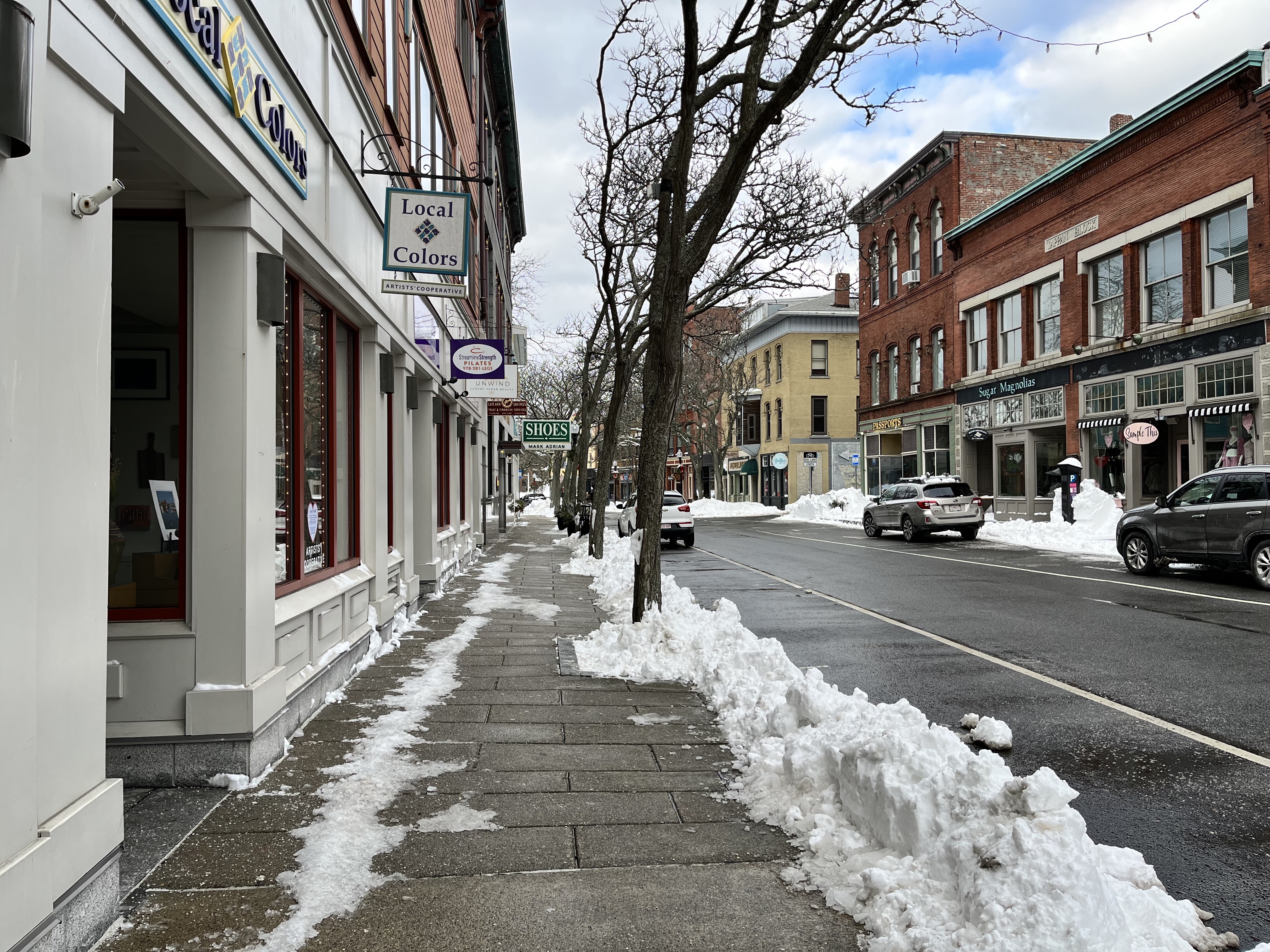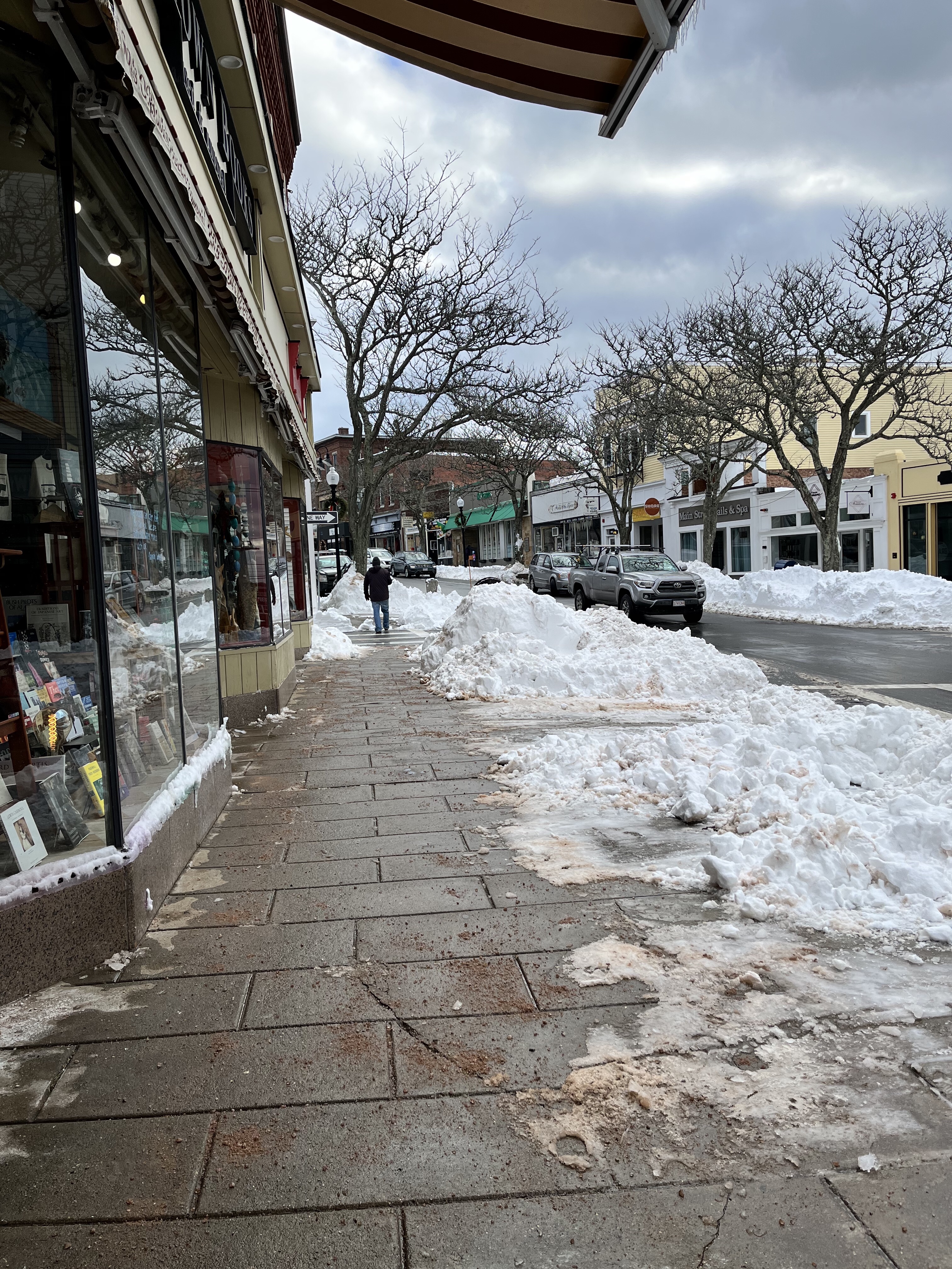 Crews spent midnight hours clearing and reducing massive snowpiles from Main St downtown along with other shopping areas to make it more accessible to shoppers and residents. Some snow remains, but it is vastly better now after a hard night’s work. Thanks all!