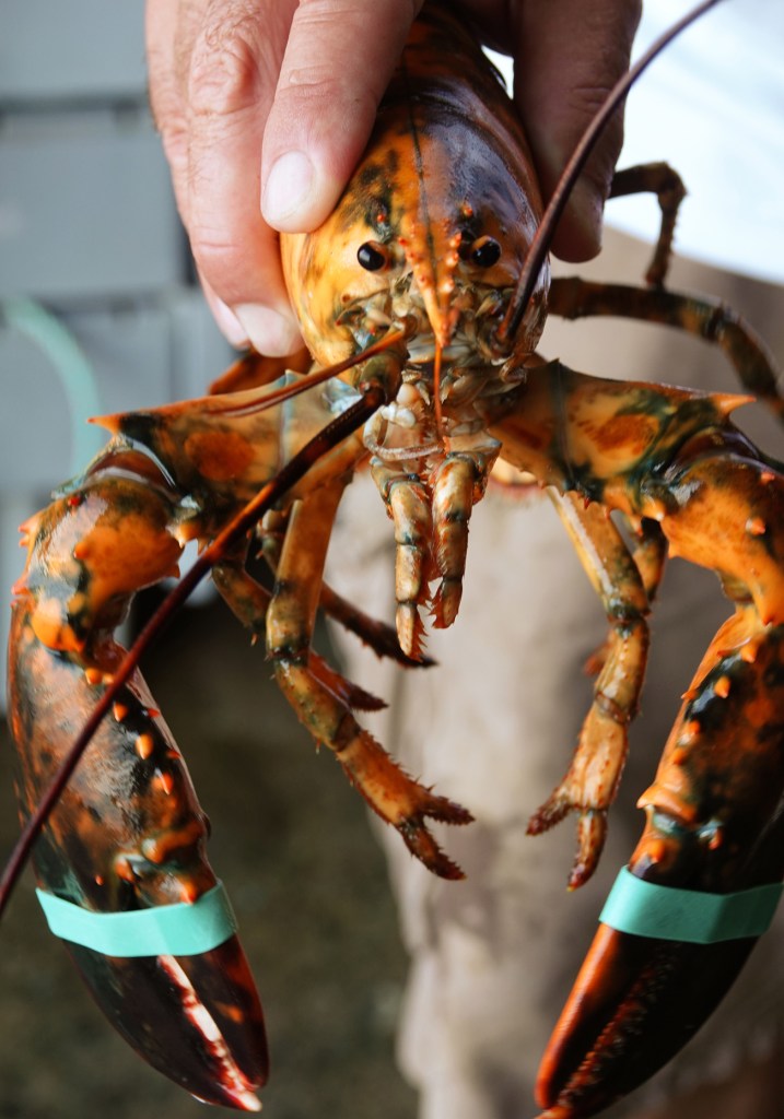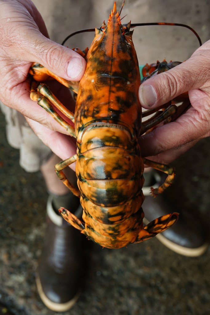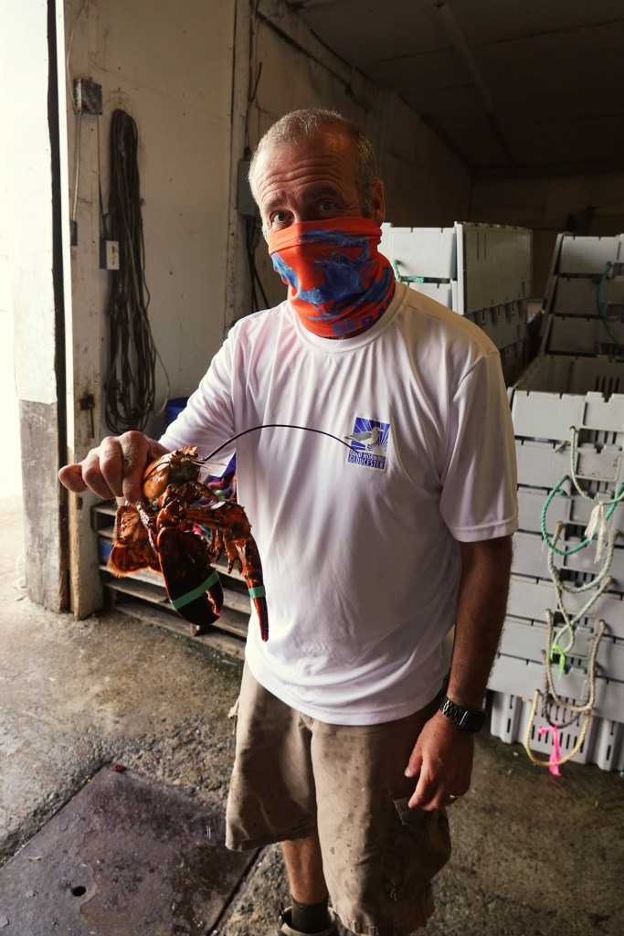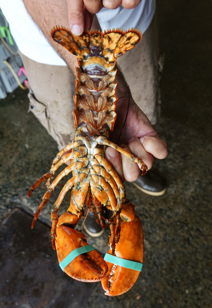 I also took Joey up on his invitation today to meet the Calico Lobster at Capt Joe & Sons. Joey personally introduced me to a very active and handsome crustacean. He/she may look already steamed, but definitely wasn’t.