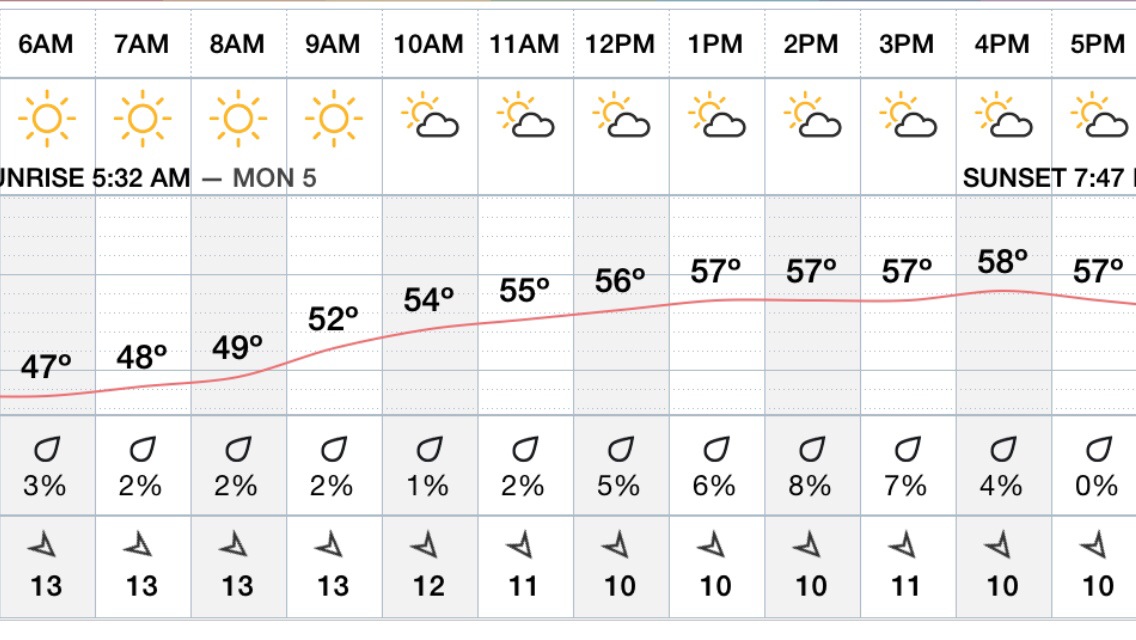 Sun & Clouds 60’s Late day Storms possible ! East winds light becoming west very late today … Hot Monday 85-90° no sea breeze …. Mostly sunny.