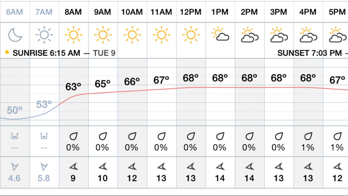 Cool / raw morning clouds poss Fog & Drizzle temps 60’s NE winds 10-15mph