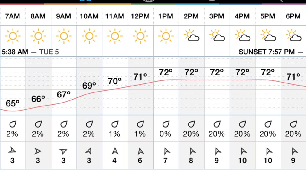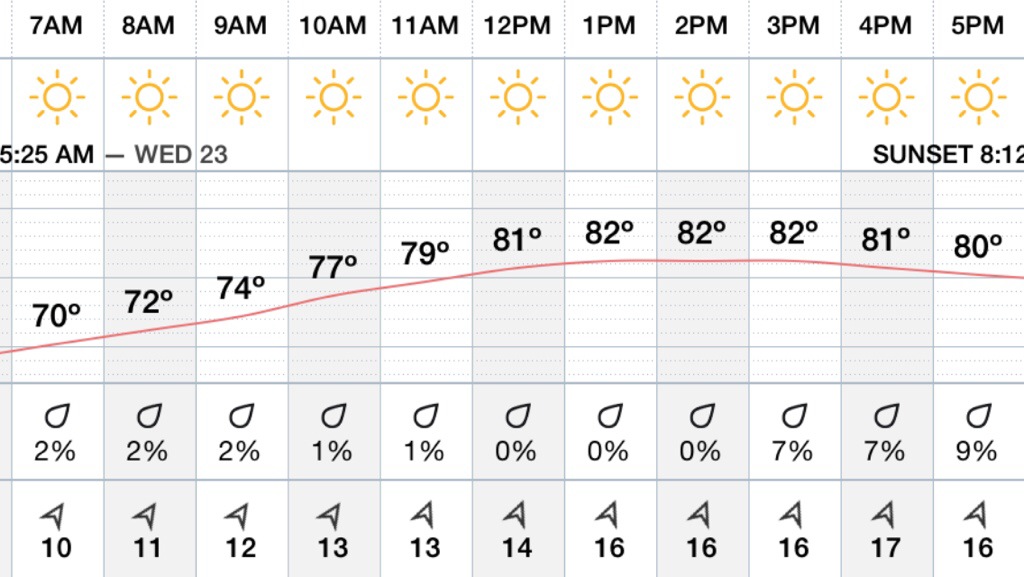 Wed S winds around 5 kt…becoming E in the afternoon. Seas around 2 ft.