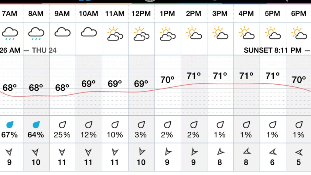 Today N winds 5 to 10 kt…becoming E this afternoon. Seas around 2 ft. A slight chance of showers this morning…then a chance of showers and tstms this afternoon. Patchy fog this morning with vsby 1 to 3 nm.