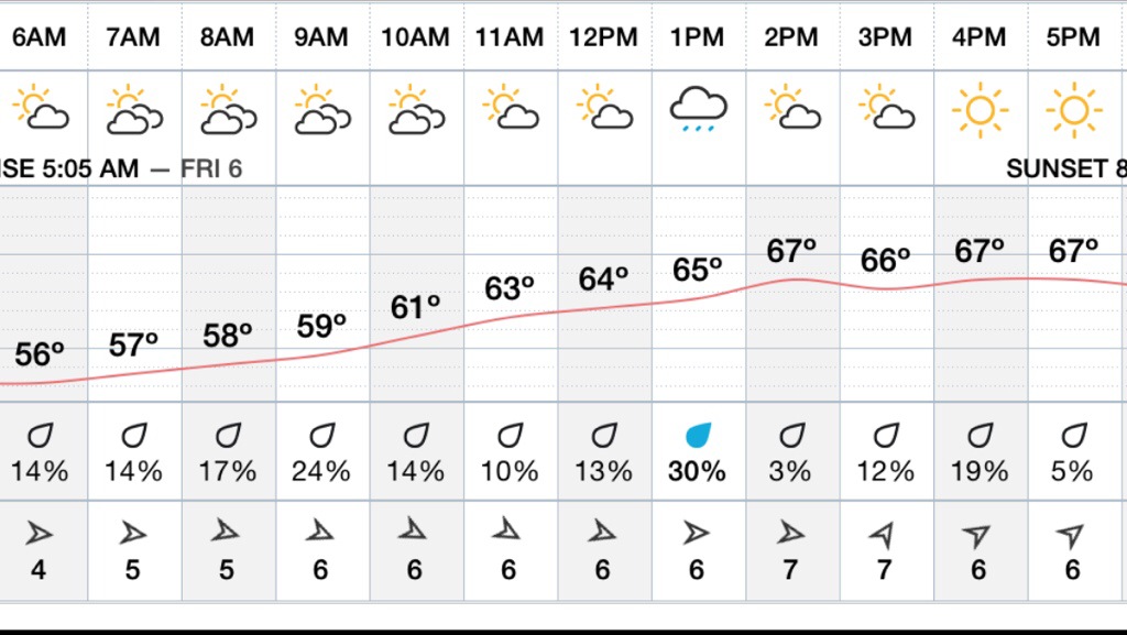 Beach Forecast .. Mostly Sunny 89° temp , winds west 10-18mph .. Water temps 58-63° . UV INDEX 10! Burn in less then 10-15 minutes … Use sun screen .. Enjoy have a great day !