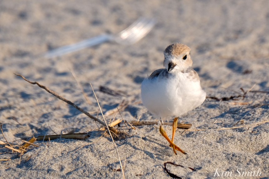Twenty-eight-day old Piping Plover shown with a small sample of the plastic pollution found daily on Good harbor Beach. The plastic debris litters GHB every morning before Gloucester’s hard working DPW and trash-piker-uppers arrive to clean up the mess left by beach goers the day before.
