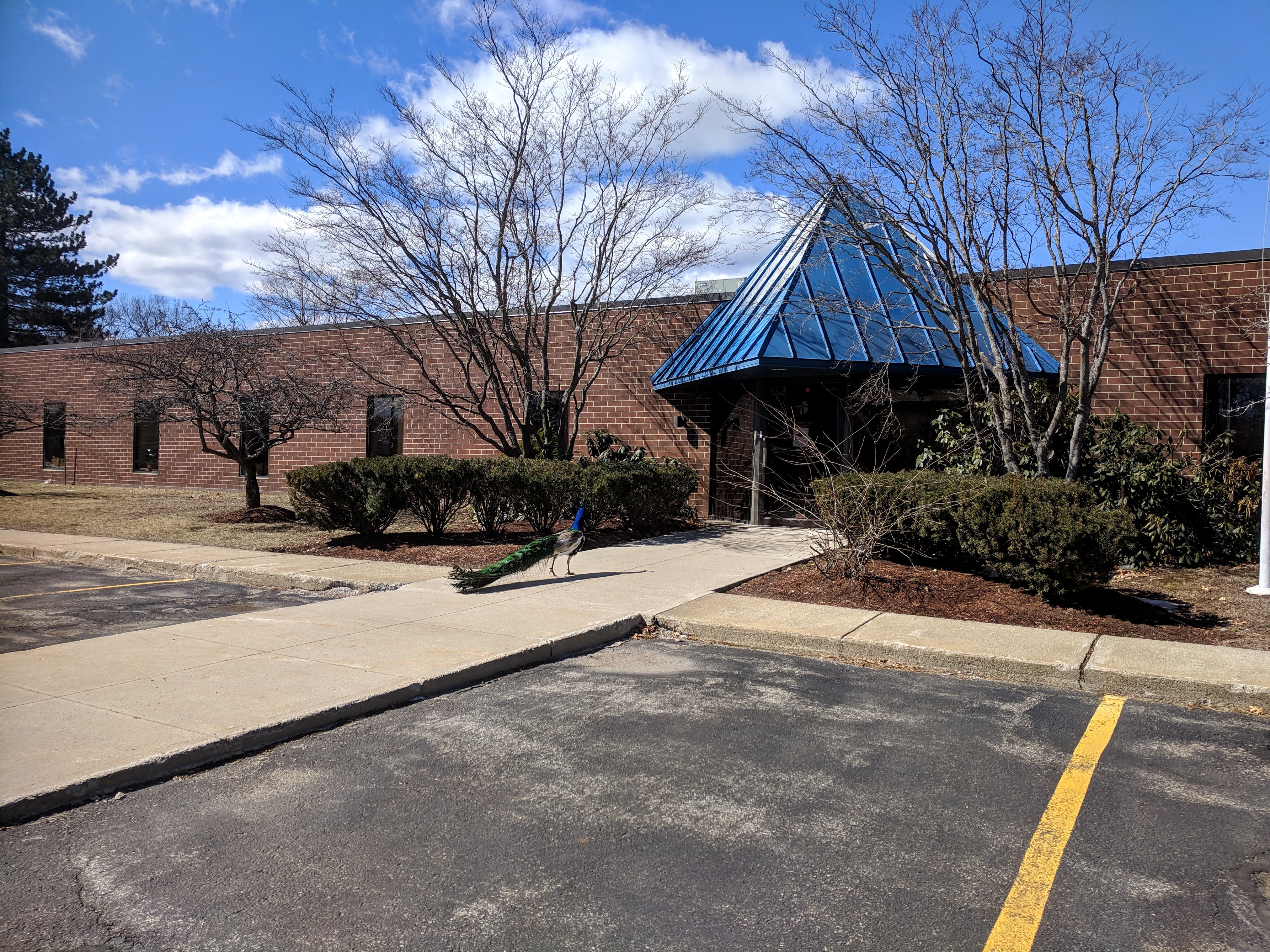 one of four peacocks_office park north of Boston Massachusetts_ don’t see that every day ©catherine ryan (2)