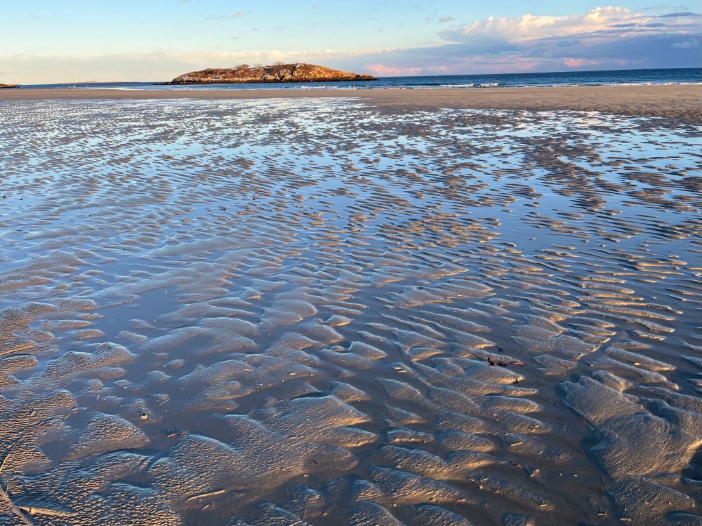photos: Feb. 1 & 2nd. Dissimilar snow days on the beach, yesterday and today, with flashes of shimmering sea when the sun shone.