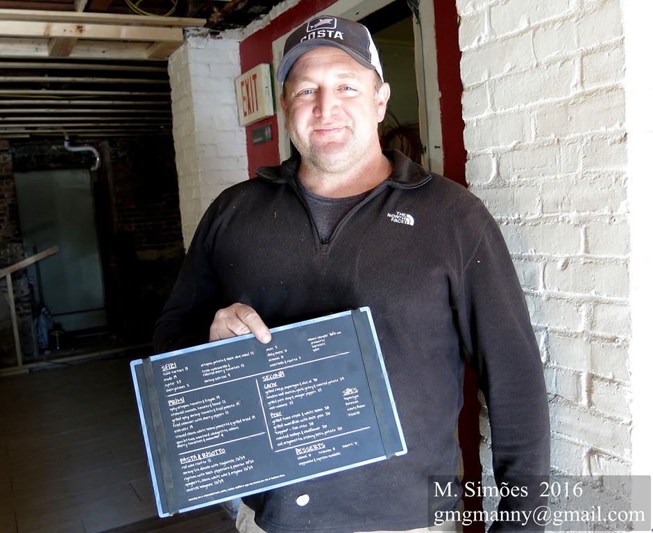 Tono Restaurant owner is on hand to review plans. Amazing how far they have progressed. The back room has a new red brick tile floor. The front room is stating to be framed in.