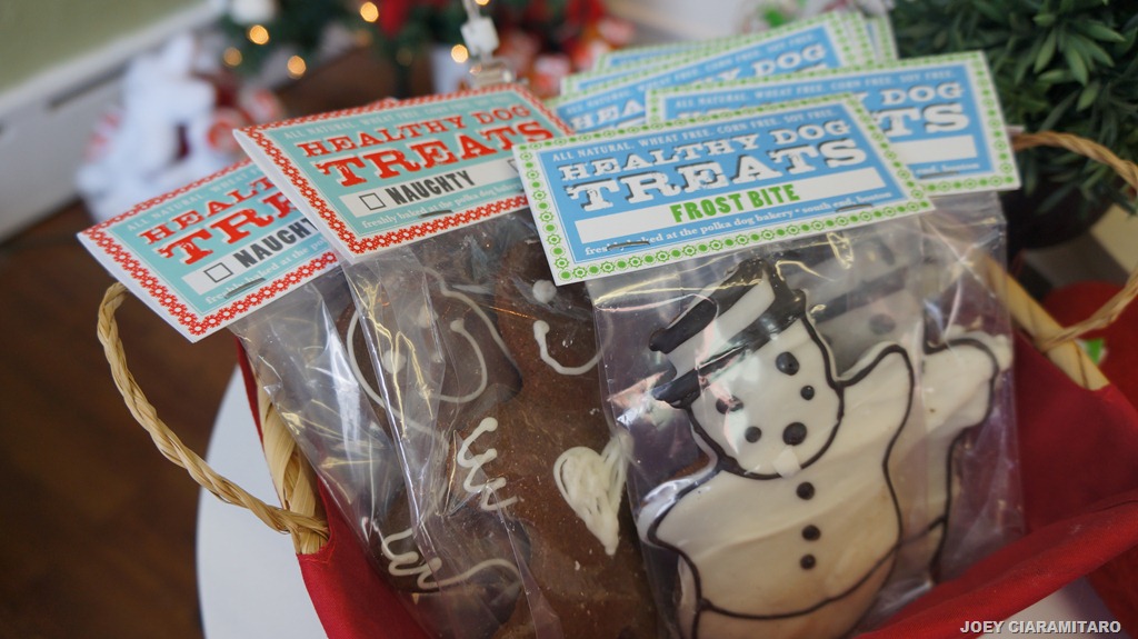 "PJs and Paper Plates", our very laid-back Christmas brunch; lots of music, twice-baked potatoes, eggs, bacon and cookies. Also do home-made dog treats for pet friends.