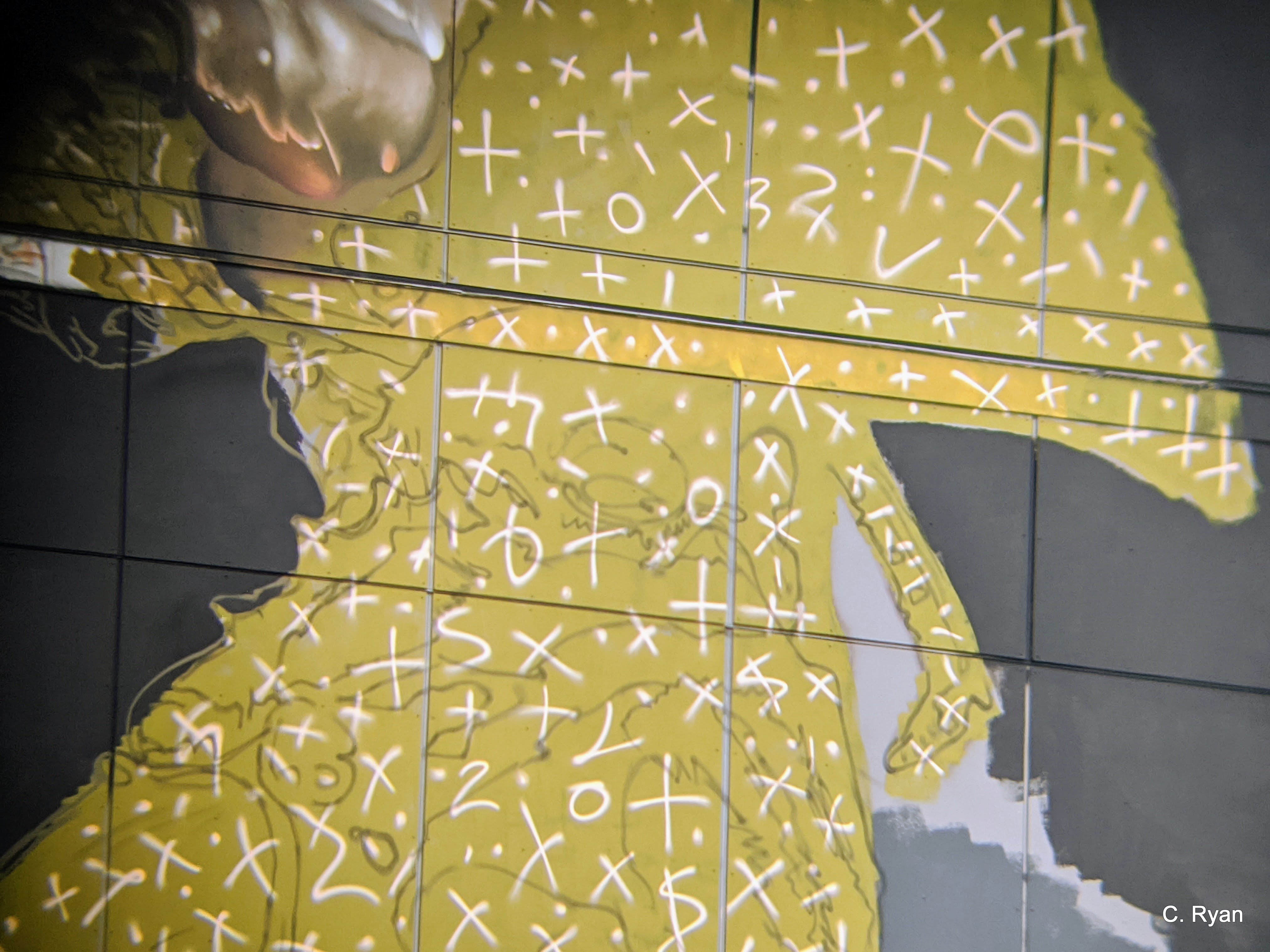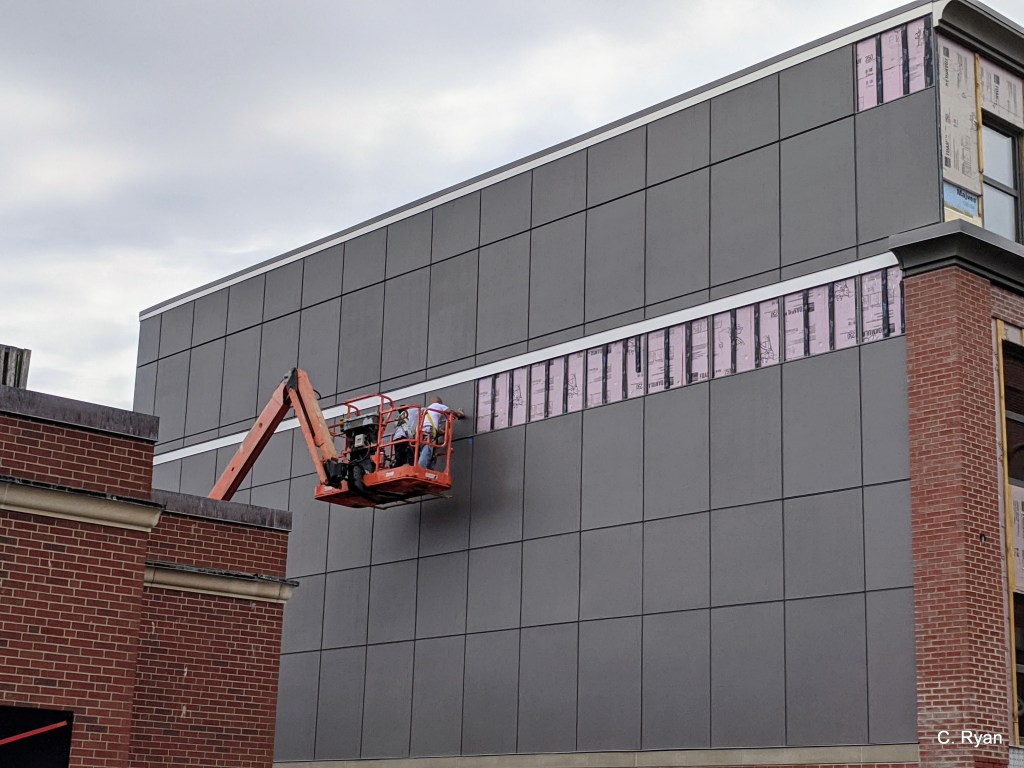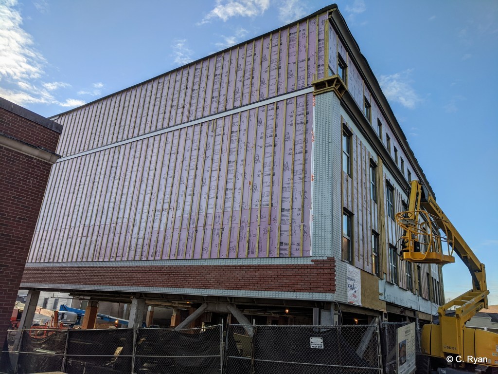 Hopefully NSCDSC will consider commissioning an extra add on for Grimdrops so the artist can extend his characterful water motif ideas straight to the top (and maybe add a gal for history! His vibrant notes brought Virginia Lee Burton Mike Mulligan Mary Ann and folly cove pattern references readily to mind). Come winter the mural might be visible from Chestnut Street. Bonus: if it’s topped off it will be visible year round from that vantage.