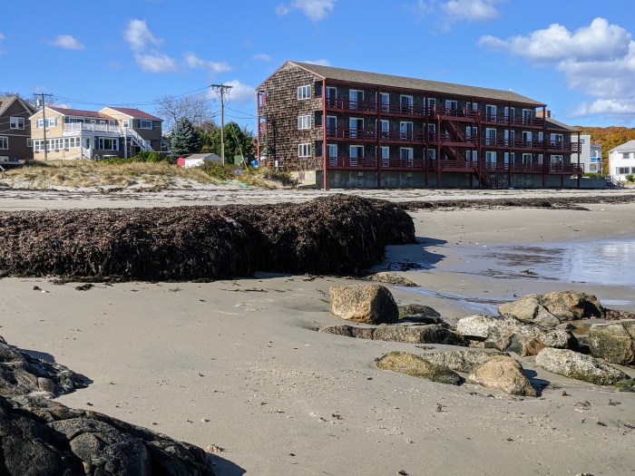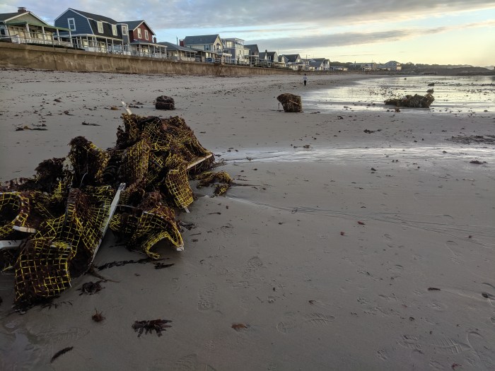Tangled lobster trap clots washed ashore after this week’s nor’easter, landing on the Rockport side of Long Beach between fire break #3 and the bridge to Cape Hedge. “Looks like a shipwreck,” people remarked.