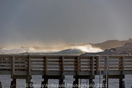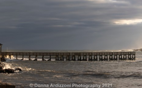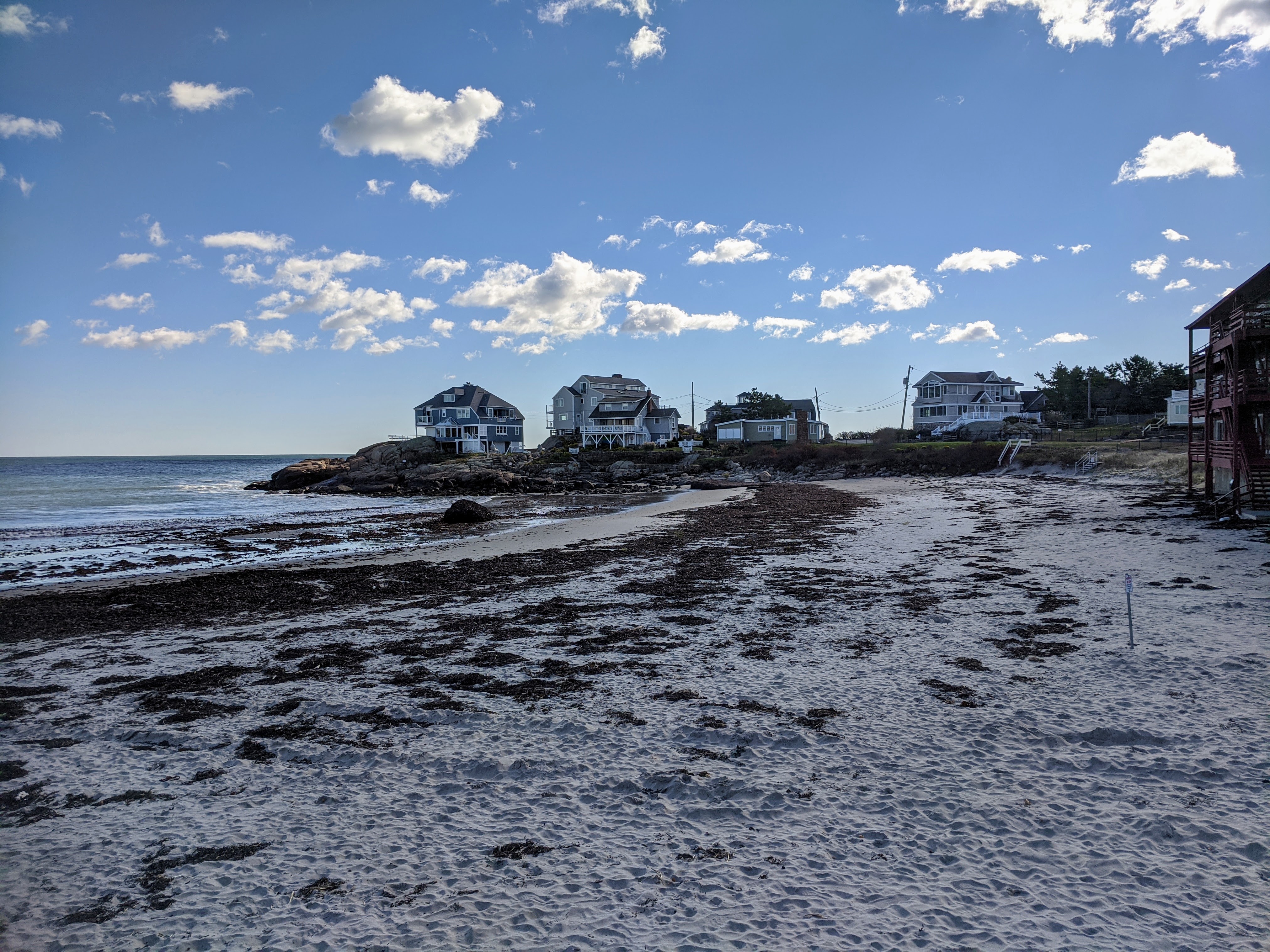 The sand was stripped away from the riprap but the seawall is fine. The high tides did not swamp the wall or reach the street.