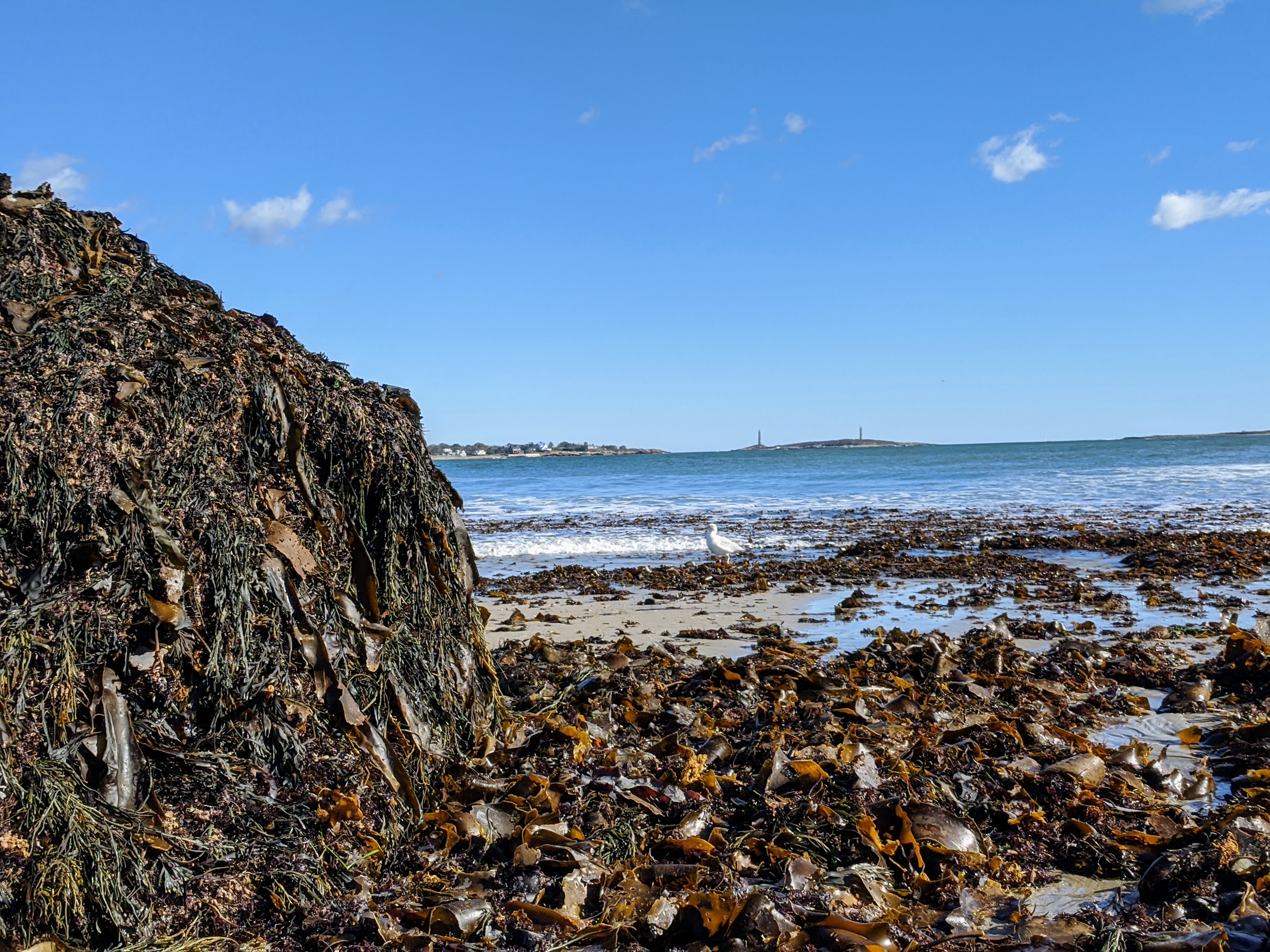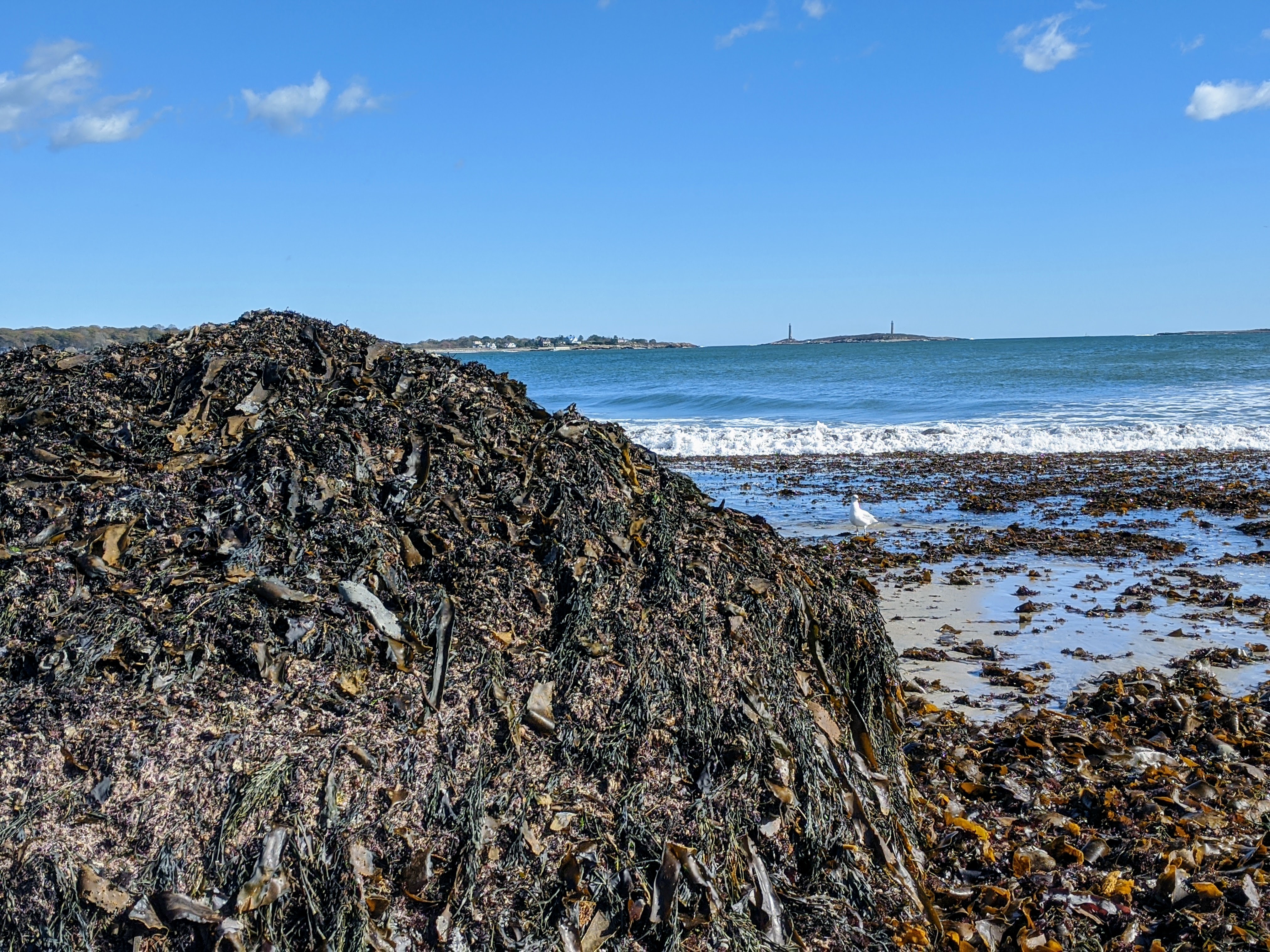 There’s a sea of seaweed deposited on Long Beach, customary after a big fall storm. A couple of monumental sculptural masses stood out this time.