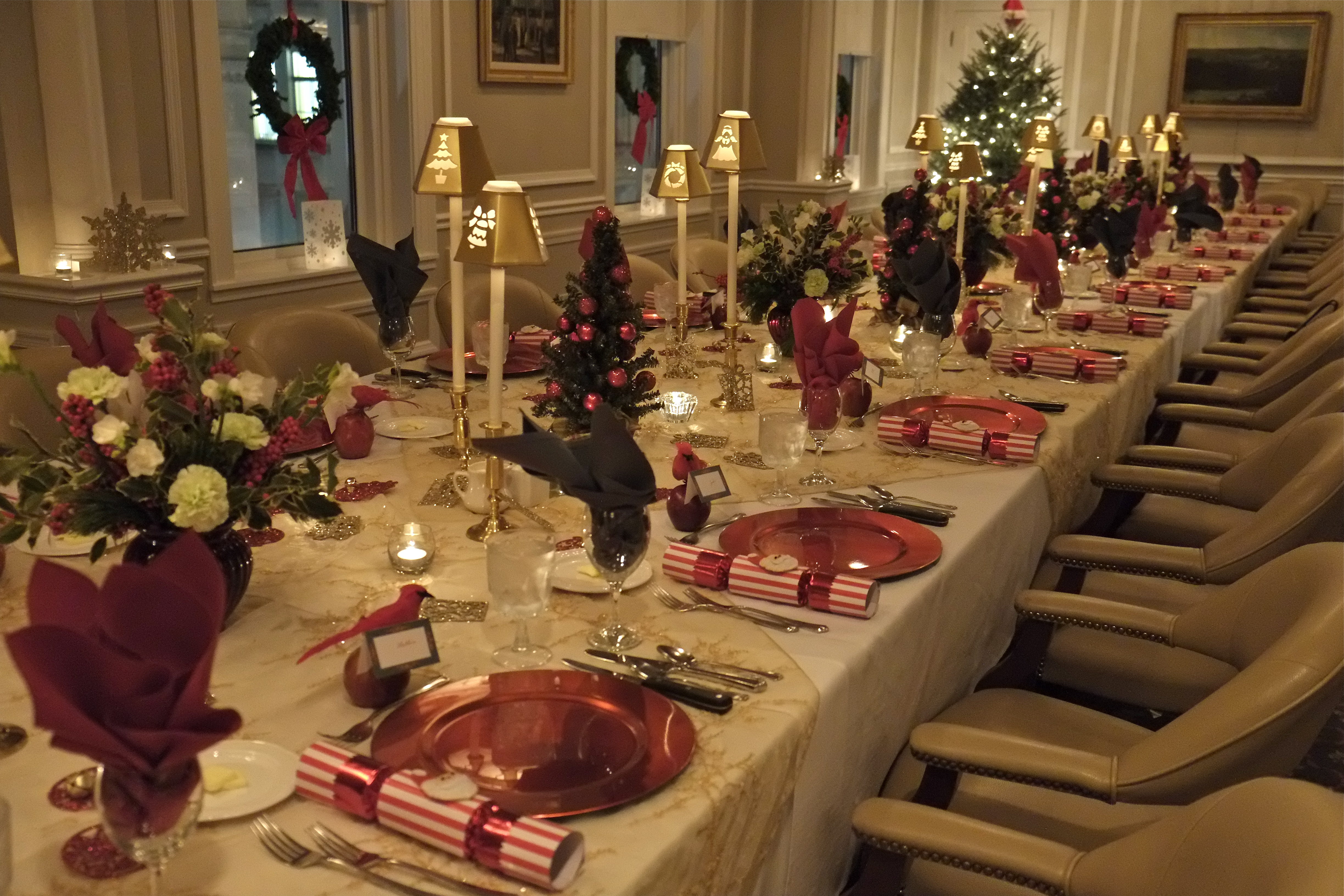 This year was my mother-in-law’s turn to host the party. The table was beautifully decorated and I love the simple and cheery touch of the cardinals on the apples.
