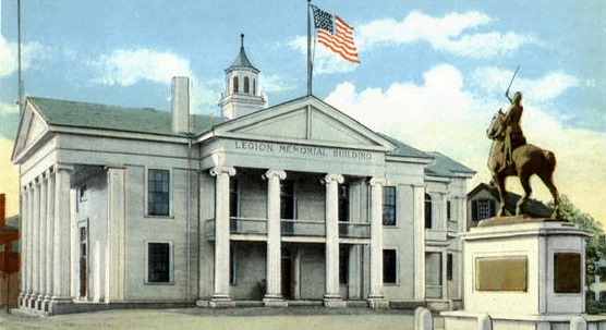 Washington St. at “the crotch of ye old highway”- Townhall | Forbes School | Legion
