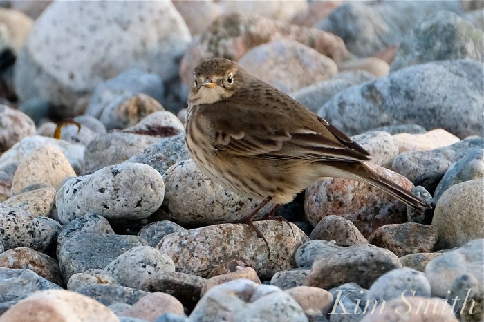 The photos were taken in low light and at some distance, but you can still get a good idea of what to look for. In Massachusetts, the American Pipit is reportedly seen during spring and fall migration, much less so in winter. They breed in both the high Arctic tundra as well as alpine meadows. Their varied habitats include mudflats, sandbars, airfields, and farms.