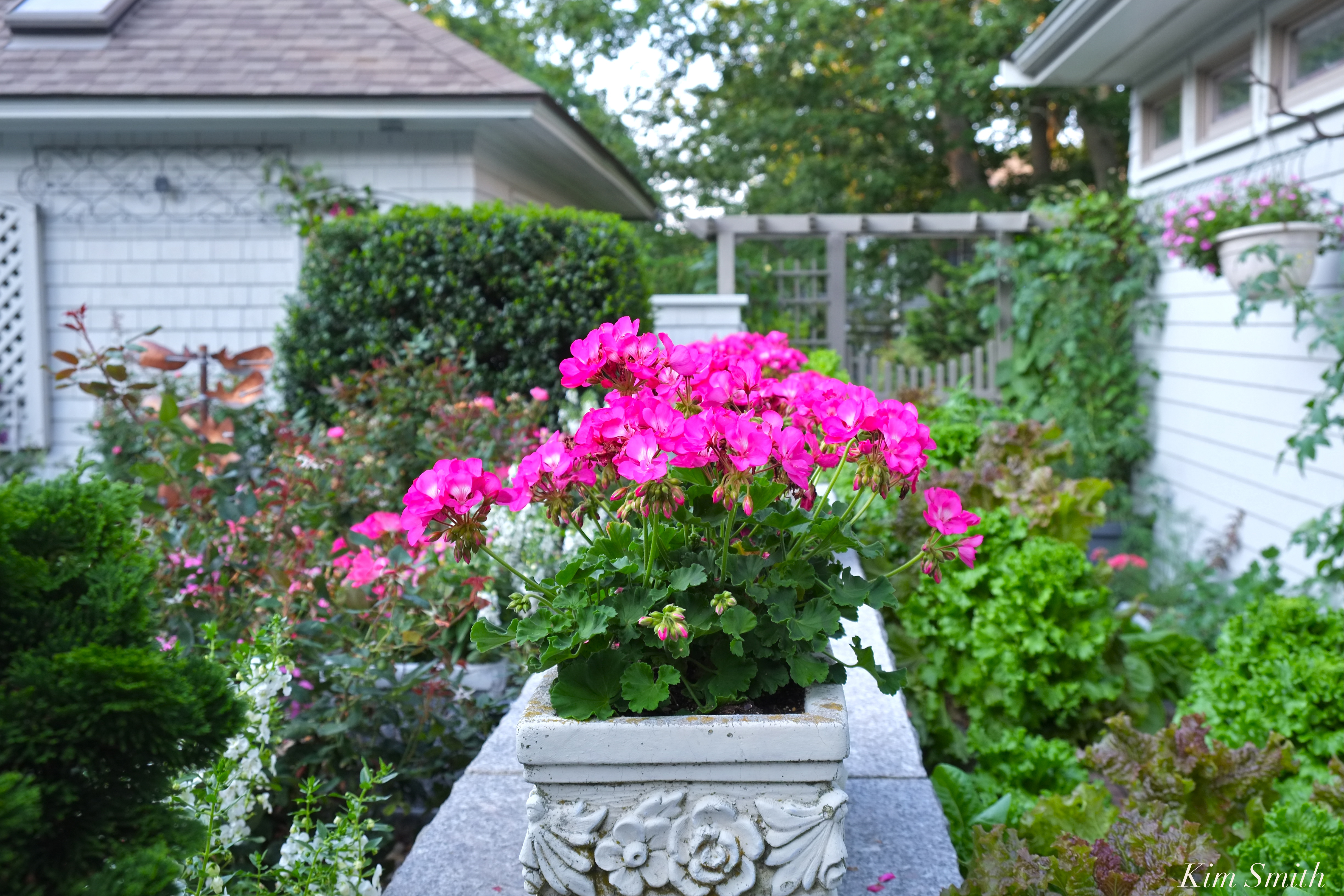 During the winter months Cape Ann often becomes home to large flocks of robins, and we have had the joy of hosting numerous numbers in our garden. I can’t help but notice their arrival. Their shadows descend, crisscrossing the window light, followed by a wild rumpus in the ‘Dragon Lady’ hollies. This pair of hollies is planted on opposing sides of the garden path, alongside my home office. I have learned to stealthily sneak up to a window, as any sudden activity inside startles birds that are investigating our garden, and they quickly disperse. Dining not only on berries of the ‘Dragon Ladies’, but also the ‘Blue Princess’ Meserve holly and winterberry bushes, I find dozens of noisy, hungry robins.